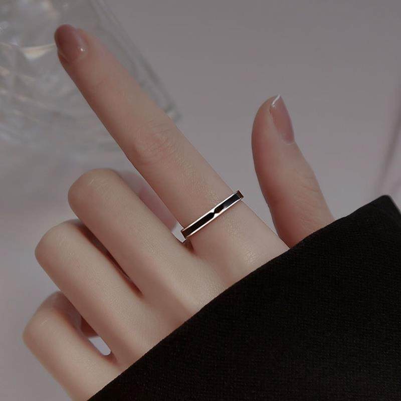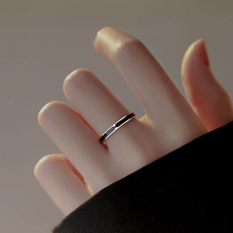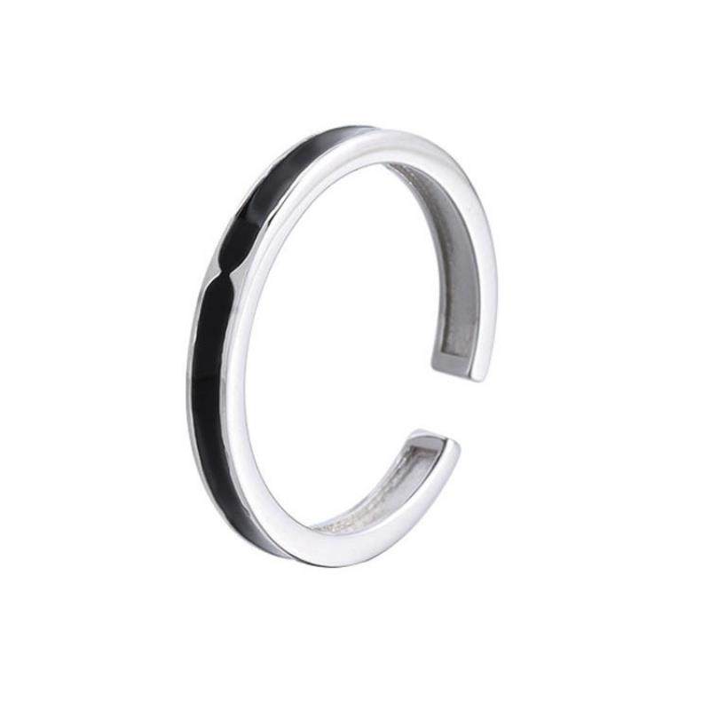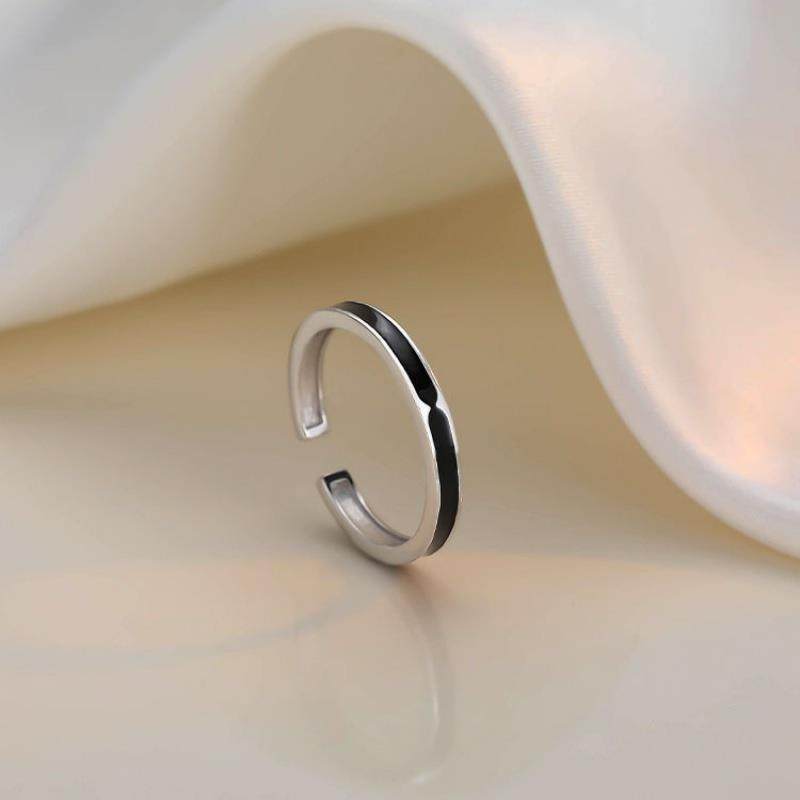srrmhyn黑色戒指女设计小众开口戒指女时尚个性银戒指2023年新款
