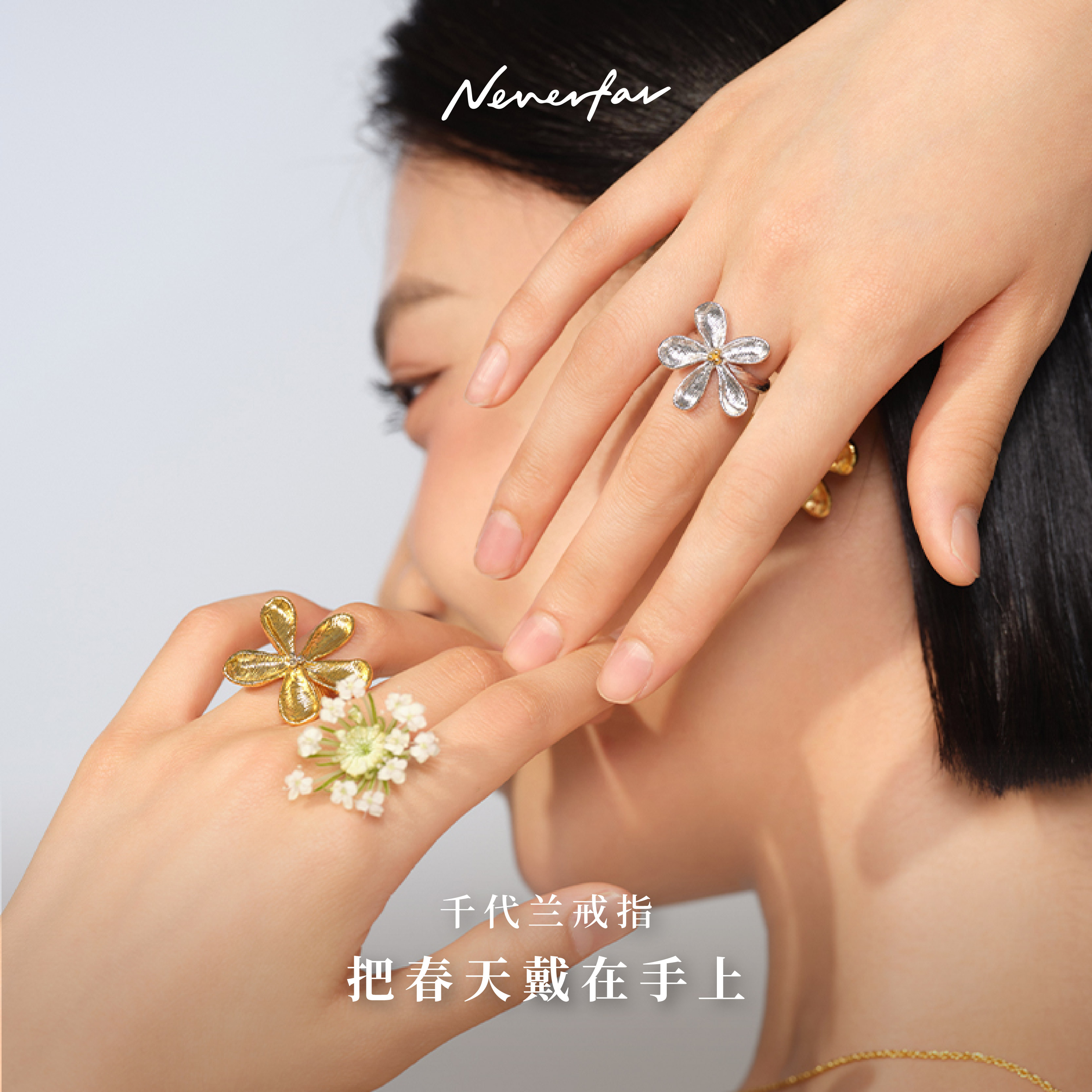 【官方立减10%】官方正版 Neverfar花叙系列千代兰戒指女开口