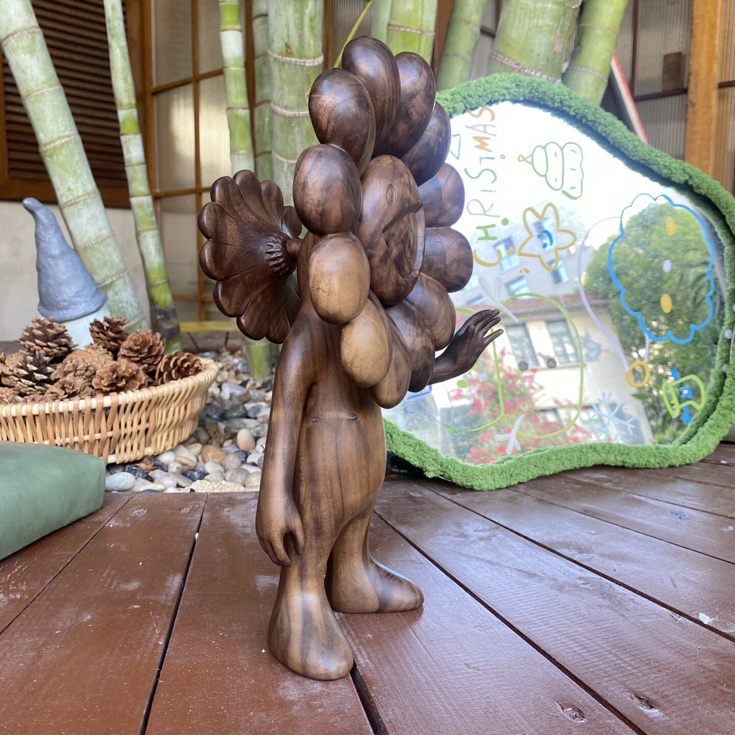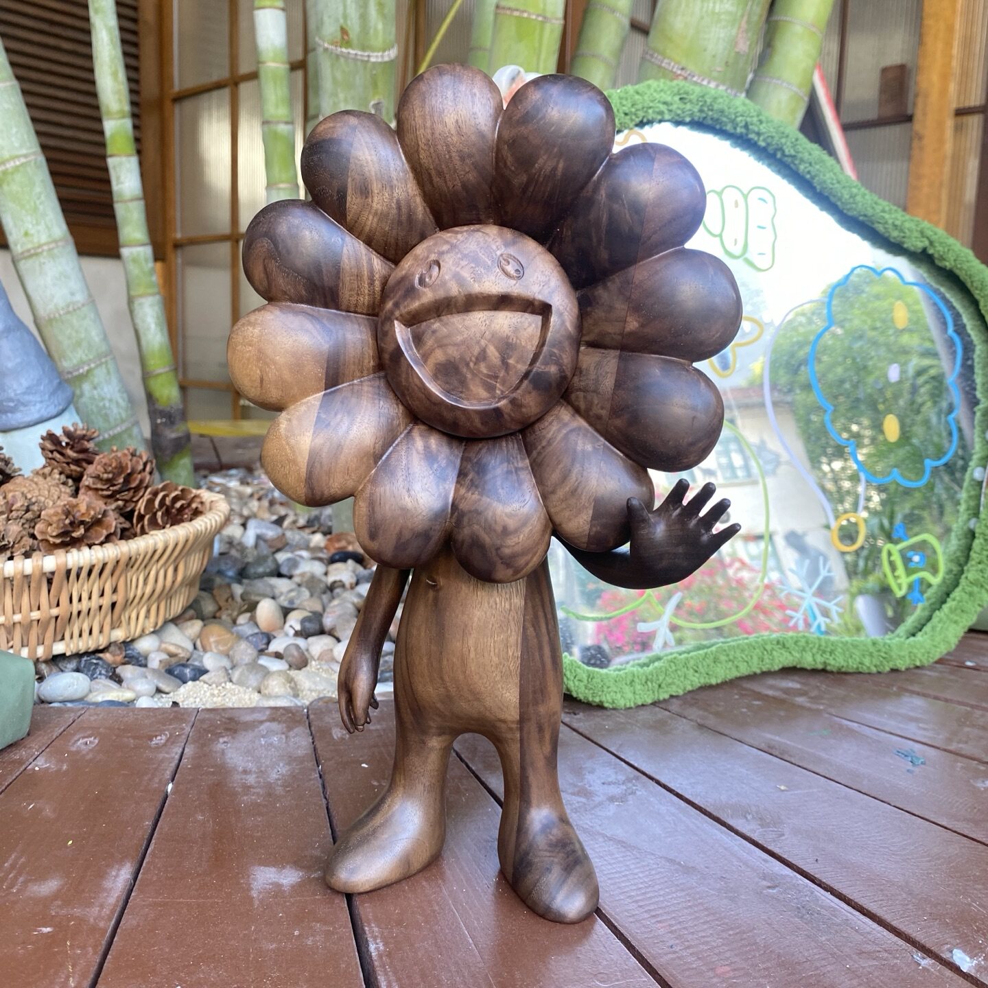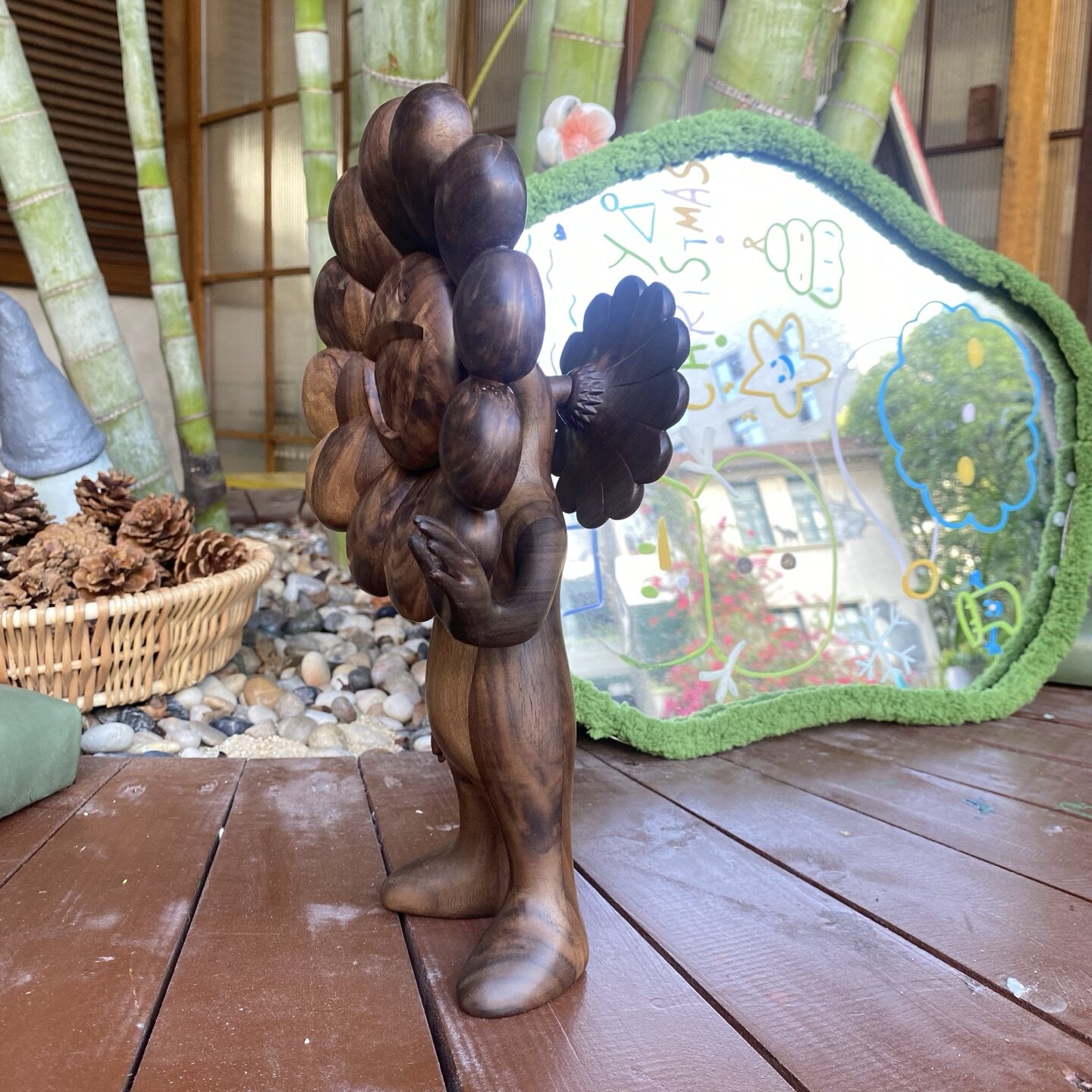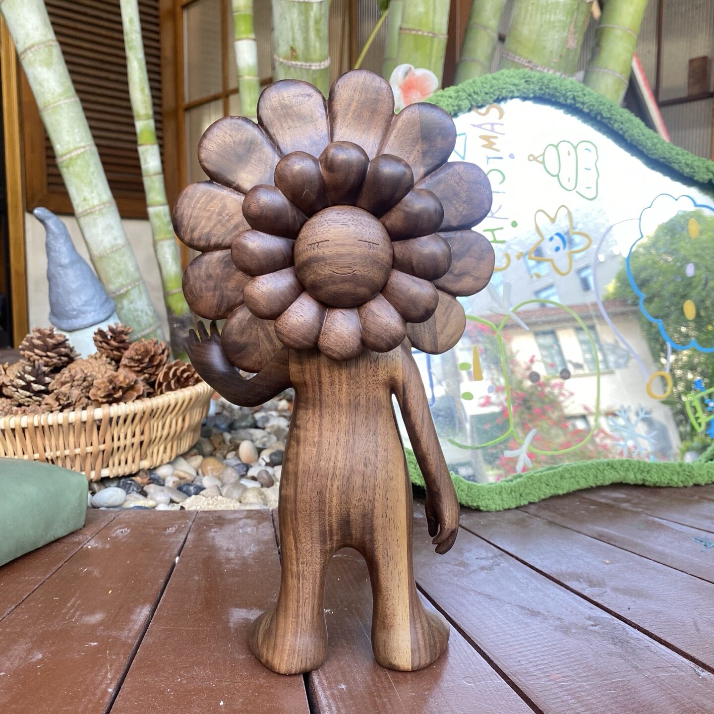 太阳花胡桃木积木熊摆件潮玩客厅桌面家居装饰30cm纯实木雕塑