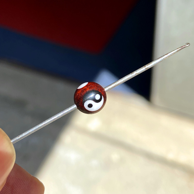 道家阴阳鱼三通配饰太极圆珠木制八卦饰品非洲小叶紫檀佛珠15mm