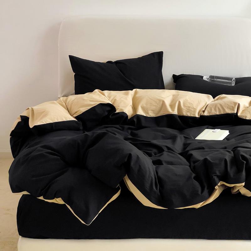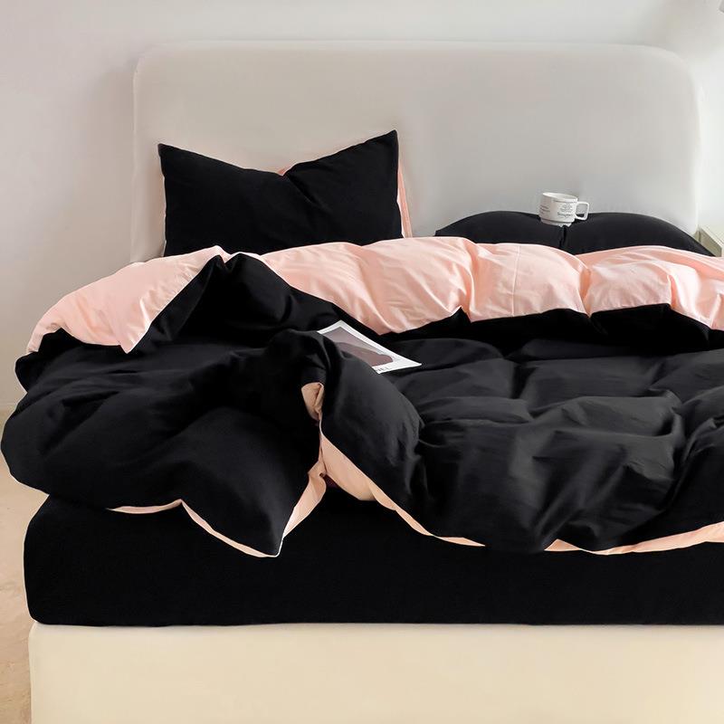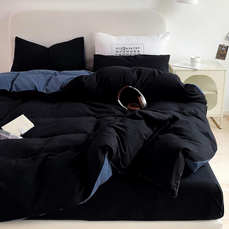 北欧风简约拼色全棉四件套黑蓝撞色简约风舒适床单被套宿舍三件套