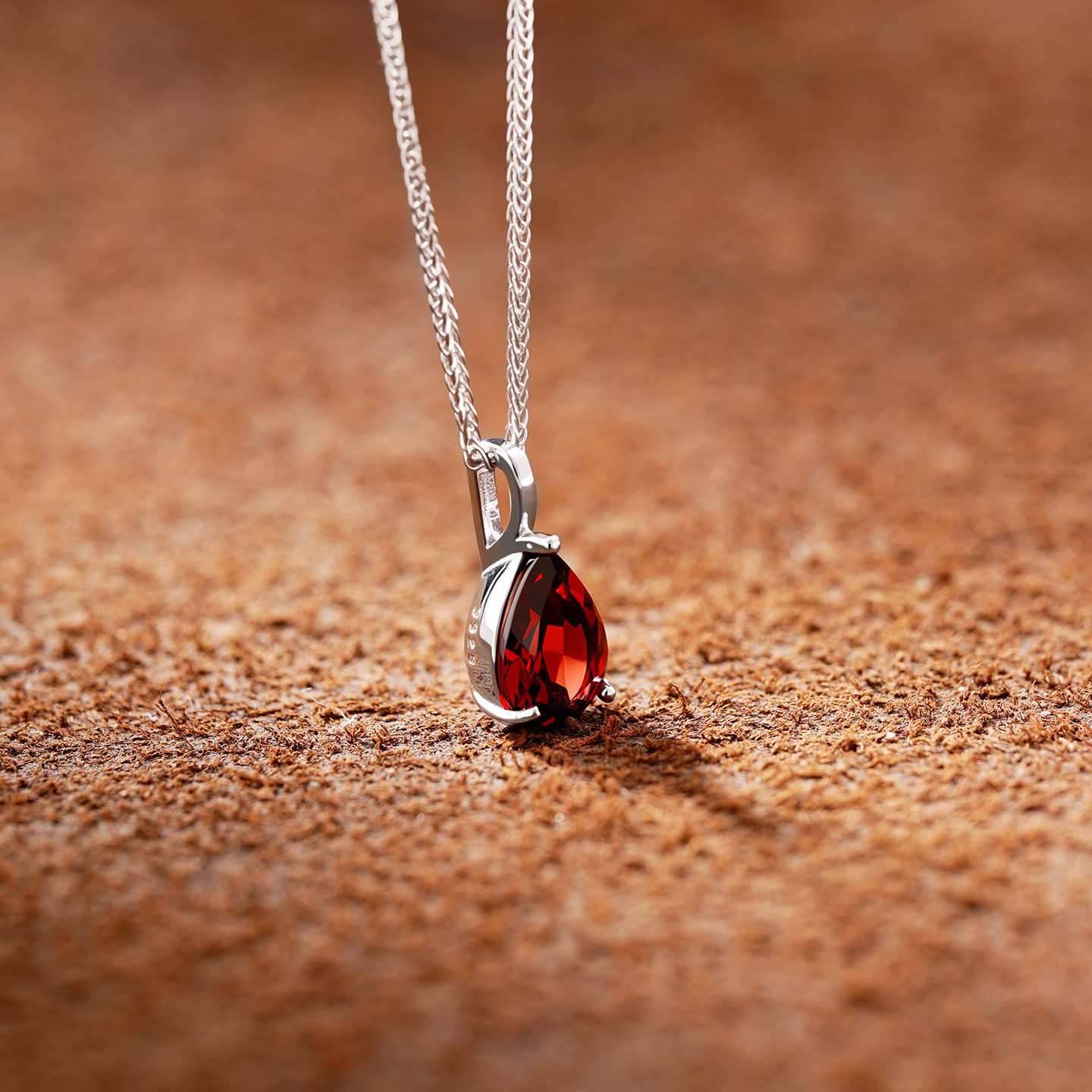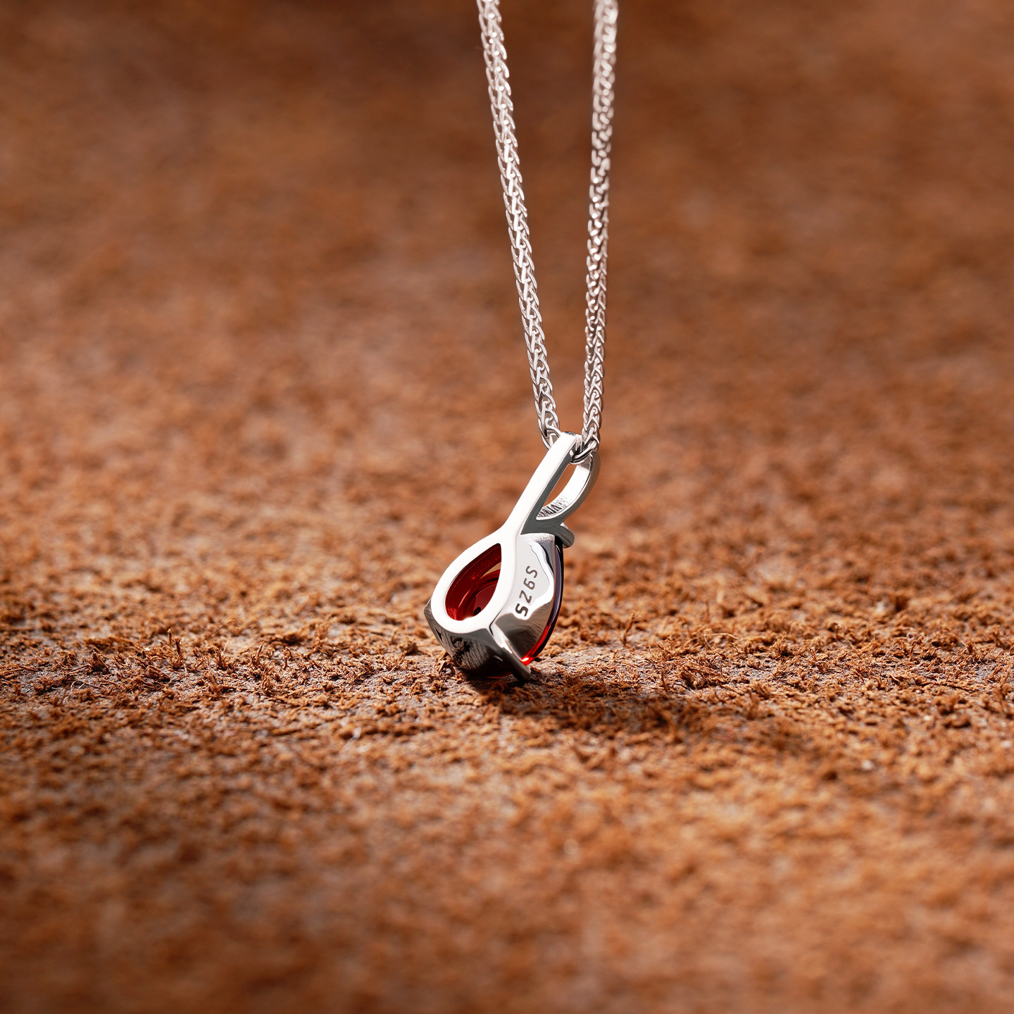 黛晶珊天然石榴石S925纯银项链红色宝石水滴吊坠小众时尚简约百搭