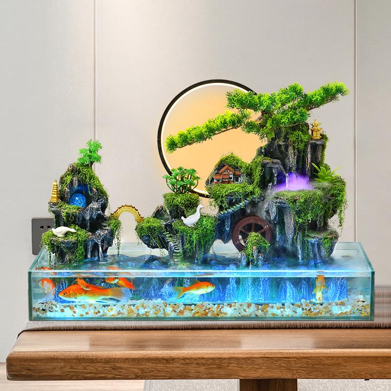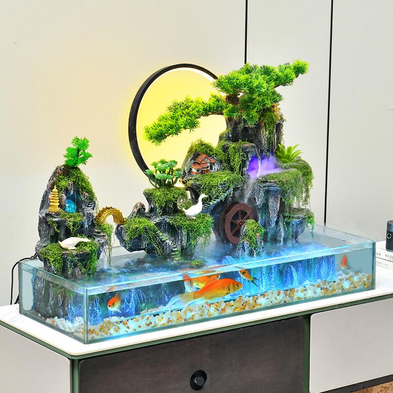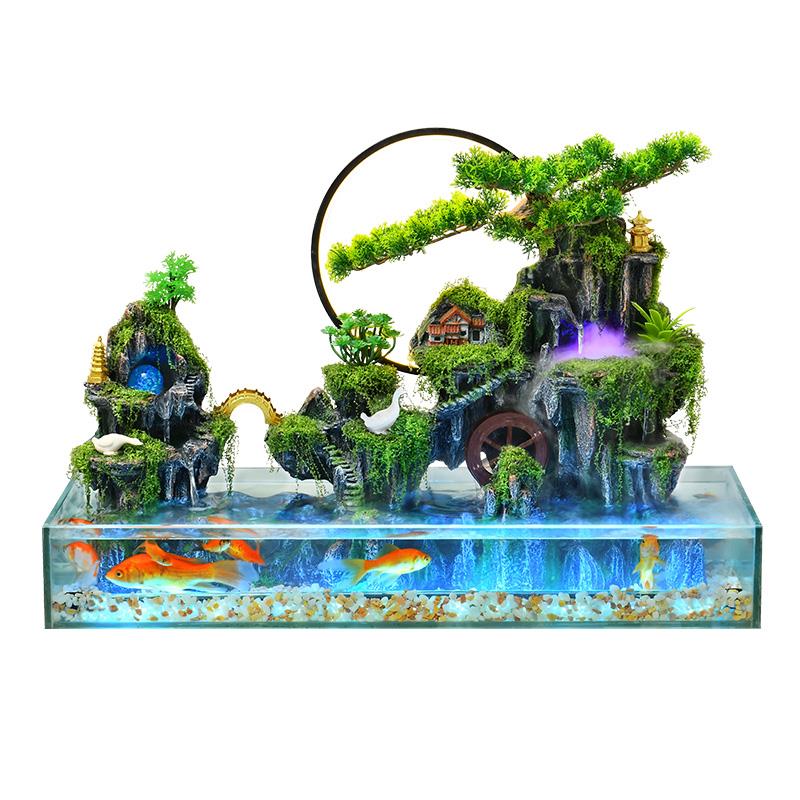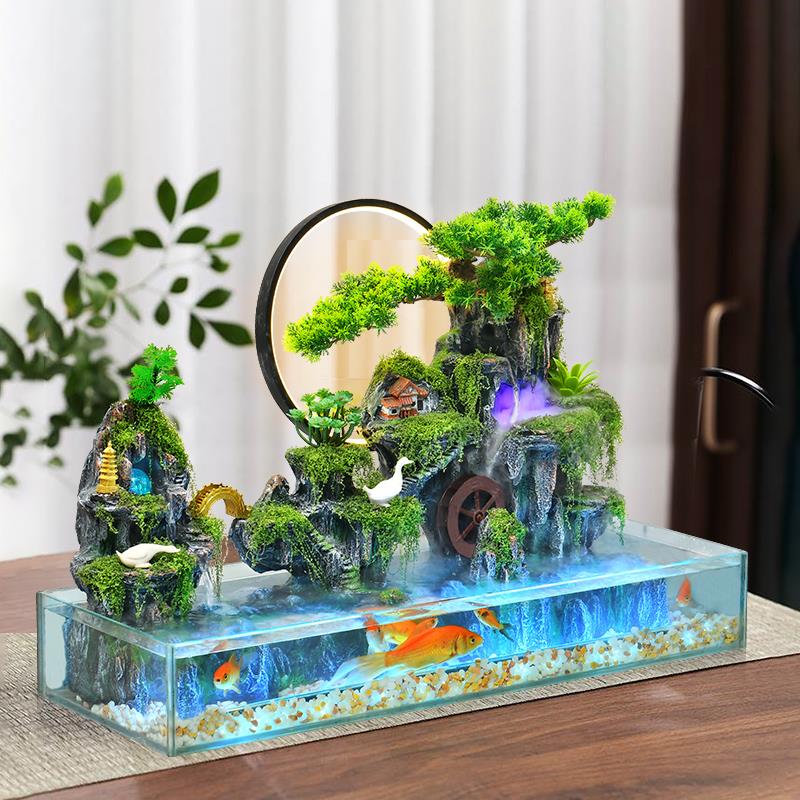 客厅鱼缸假山流水生财摆件办公室桌面加湿器落地高山循环水景装饰