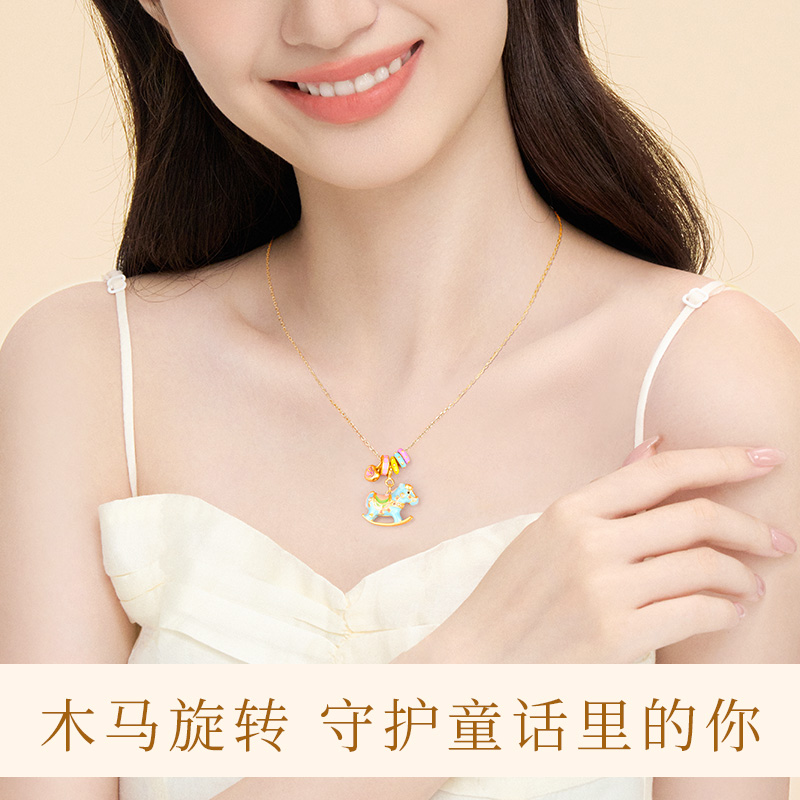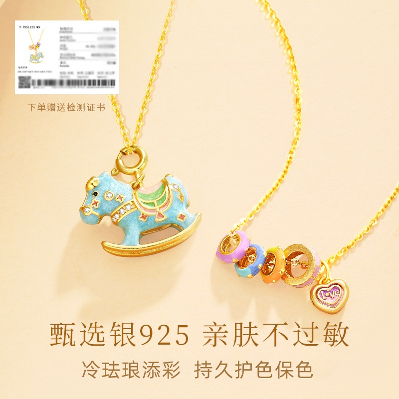 中国黄金央创旋转木马年本命年项链女纯银吊坠生日礼物送女儿S925