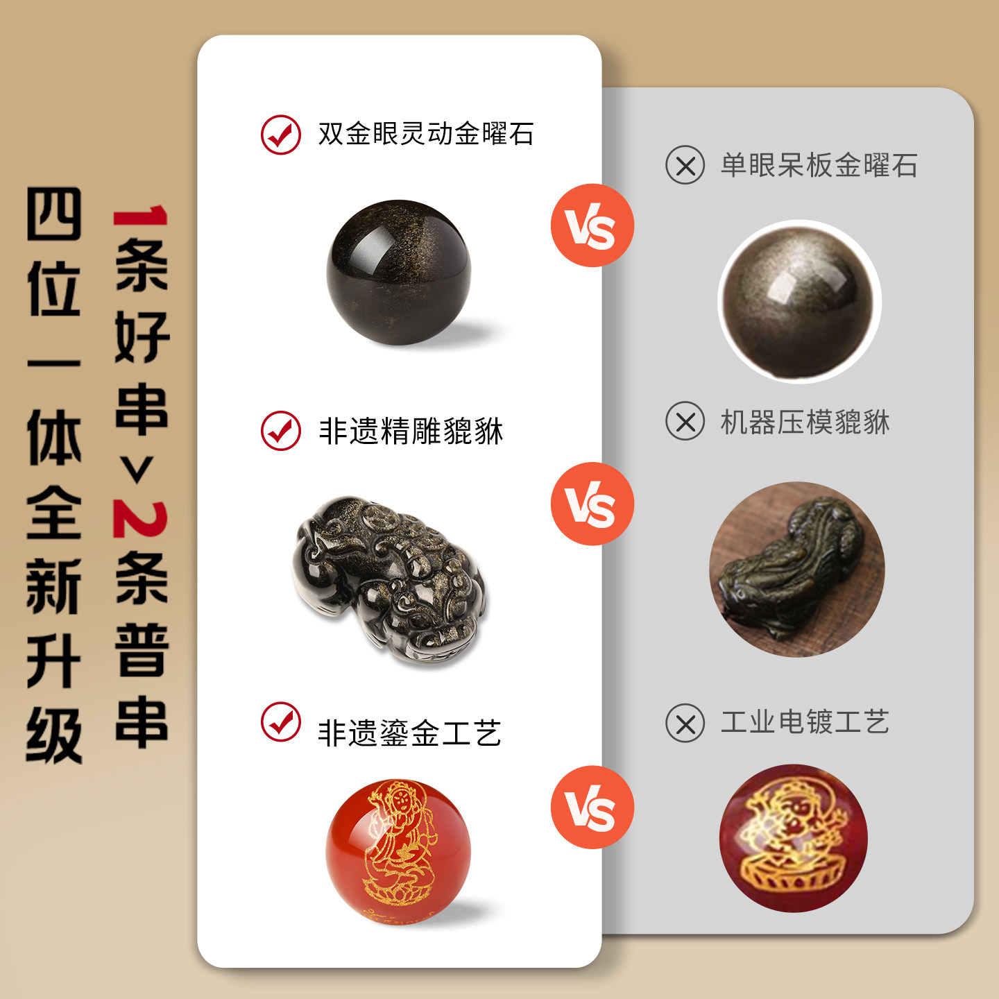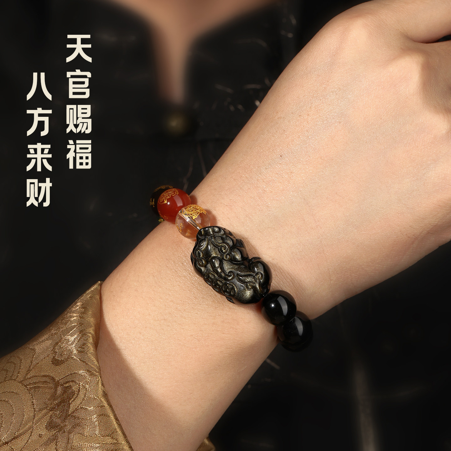 天然黑曜石手串男款2026本命年貔貅金曜石女士特级黑色水晶手链