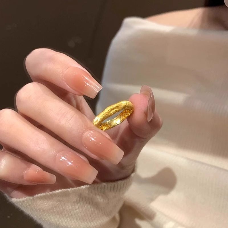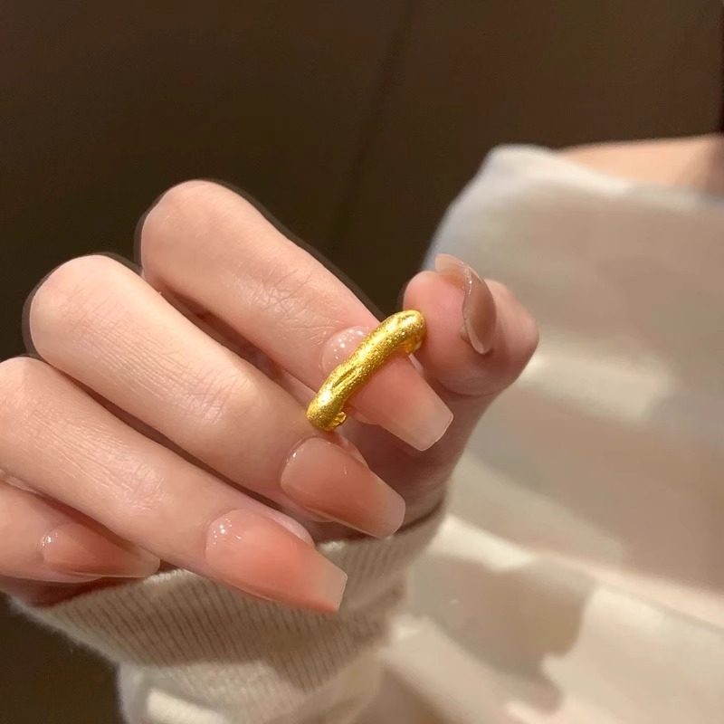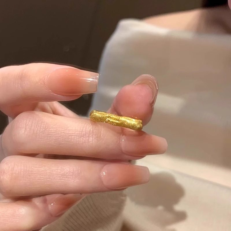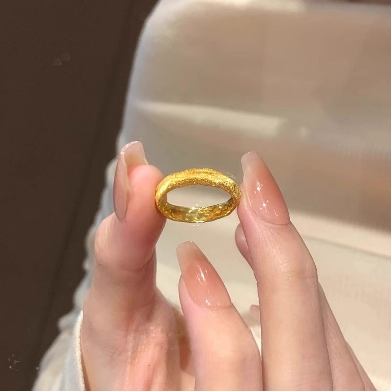 古法拉丝金色素圈戒指女小众设计轻奢高级感食指戒爆闪简约指环女