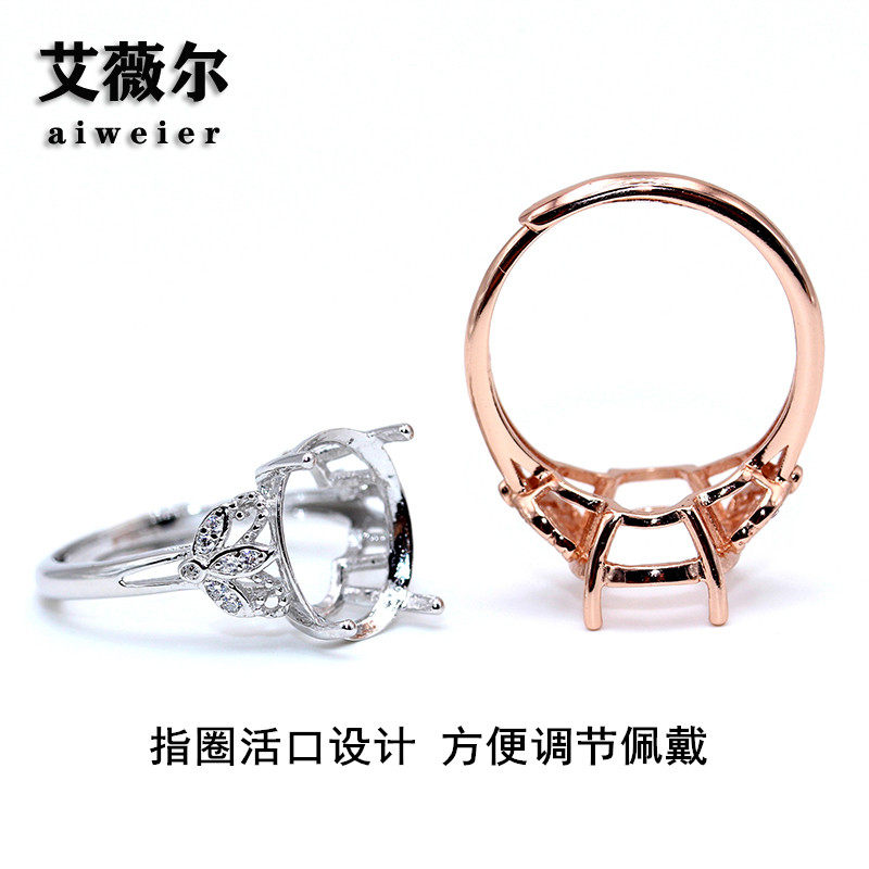 简约925银戒托空托精工女戒指空托韩版镀18K金空托5*7-15*20mm