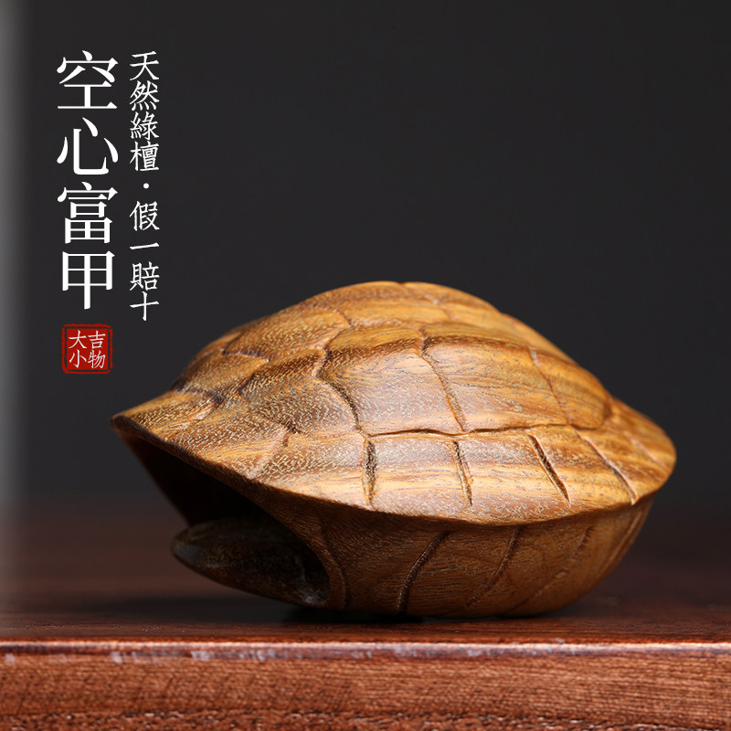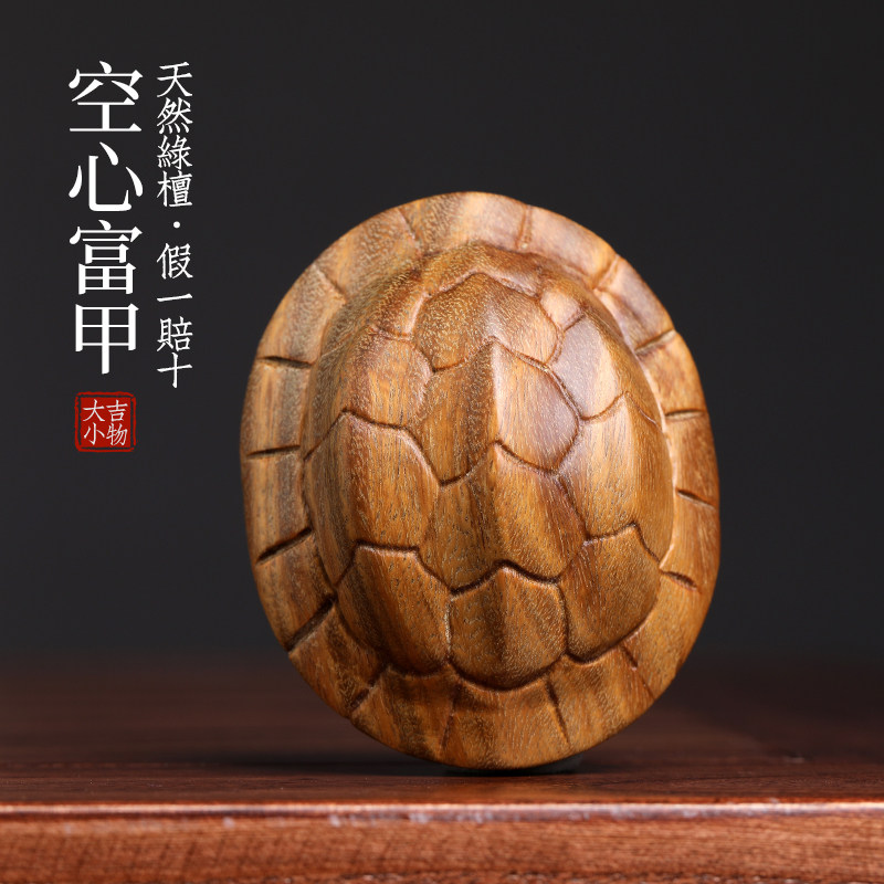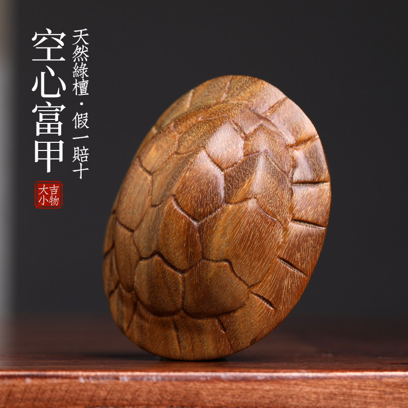 天然绿檀木雕富甲天下空u心开口乌龟壳招财富甲摆件文玩手把件