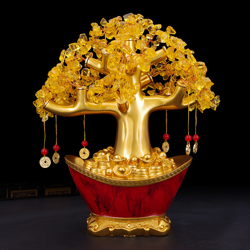 黄水晶招财树发财树摇钱树摆件店铺收银台创意礼品客厅家居装饰