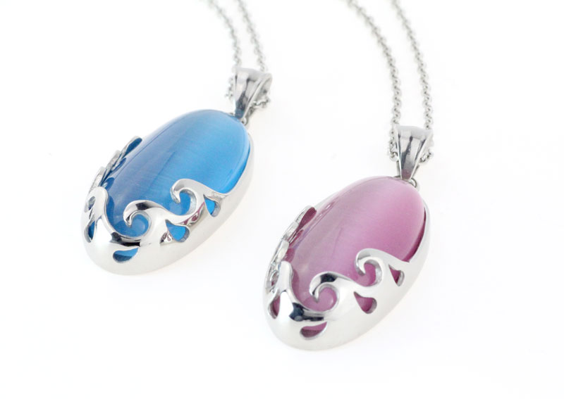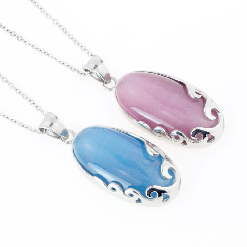 TICINO缇奇诺品牌简约时尚海浪猫眼石精钢吊坠毛衣链送人百搭礼物