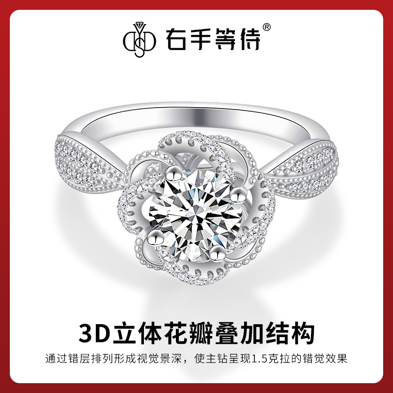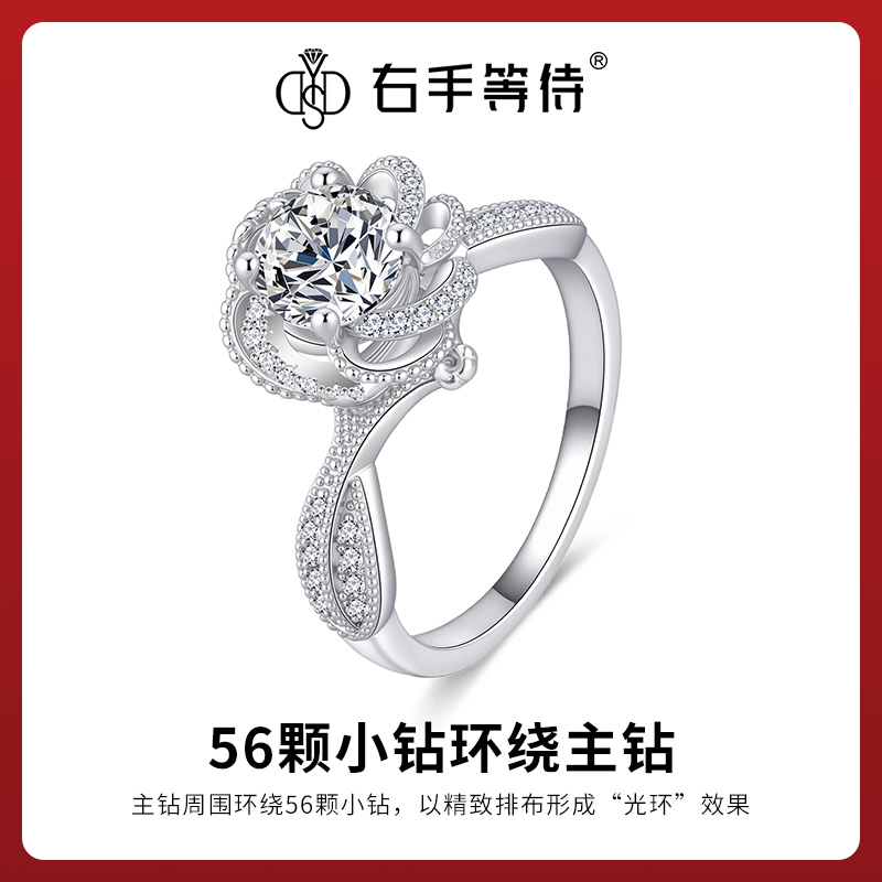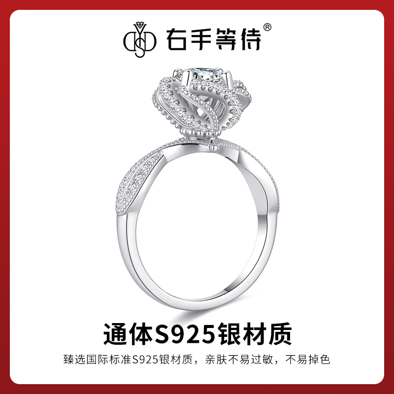 右手等待s925银手捧花戒指高级感贵气时尚食指戒玫瑰指环七夕礼物
