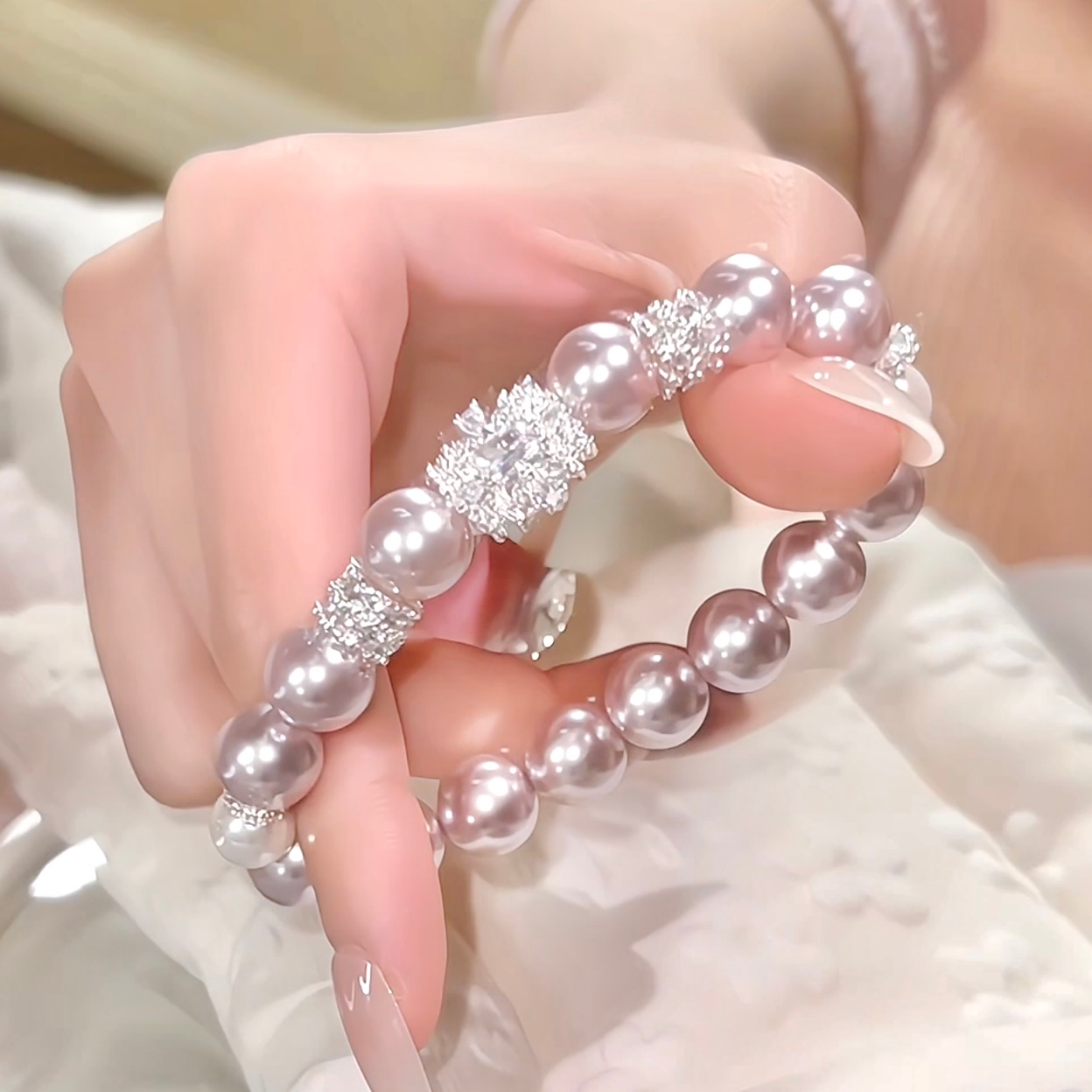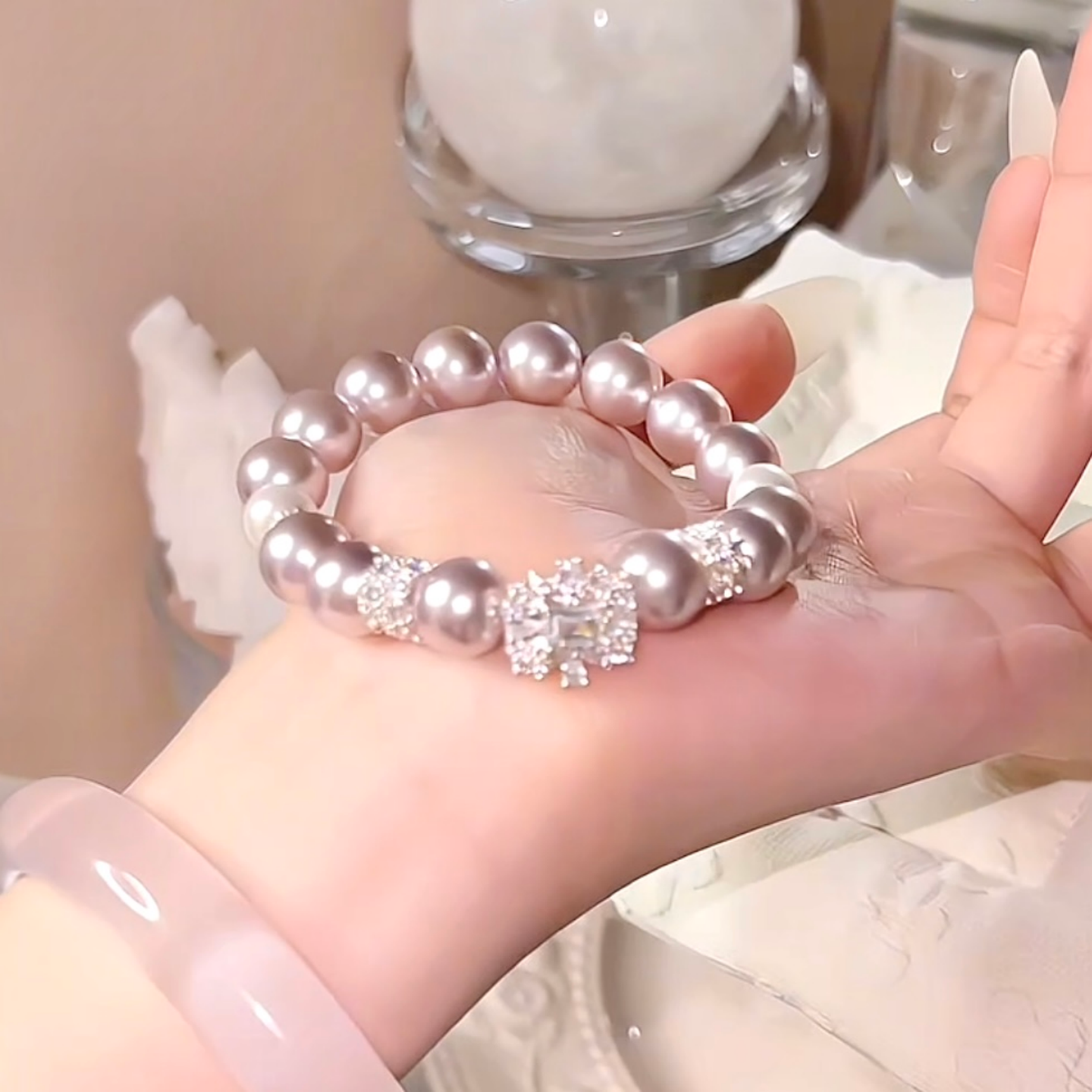 【柔紫之梦】淡紫色贝珠手链 光感贵气感灵动铜镀银礼物女