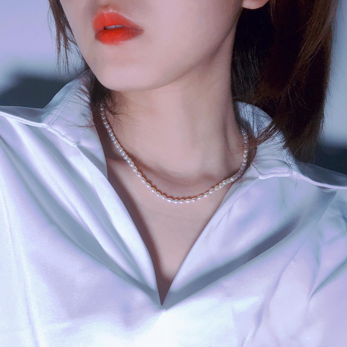 法式天然淡水珍珠项链女ins风日常通勤14k注金OT扣轻奢锁骨链吊坠