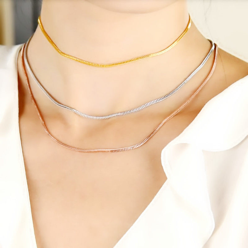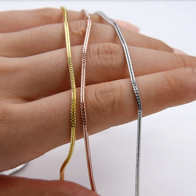 珠宝控必入 可调节裸链 S925纯银项链女1.6mm玫瑰金狐尾肖邦配链