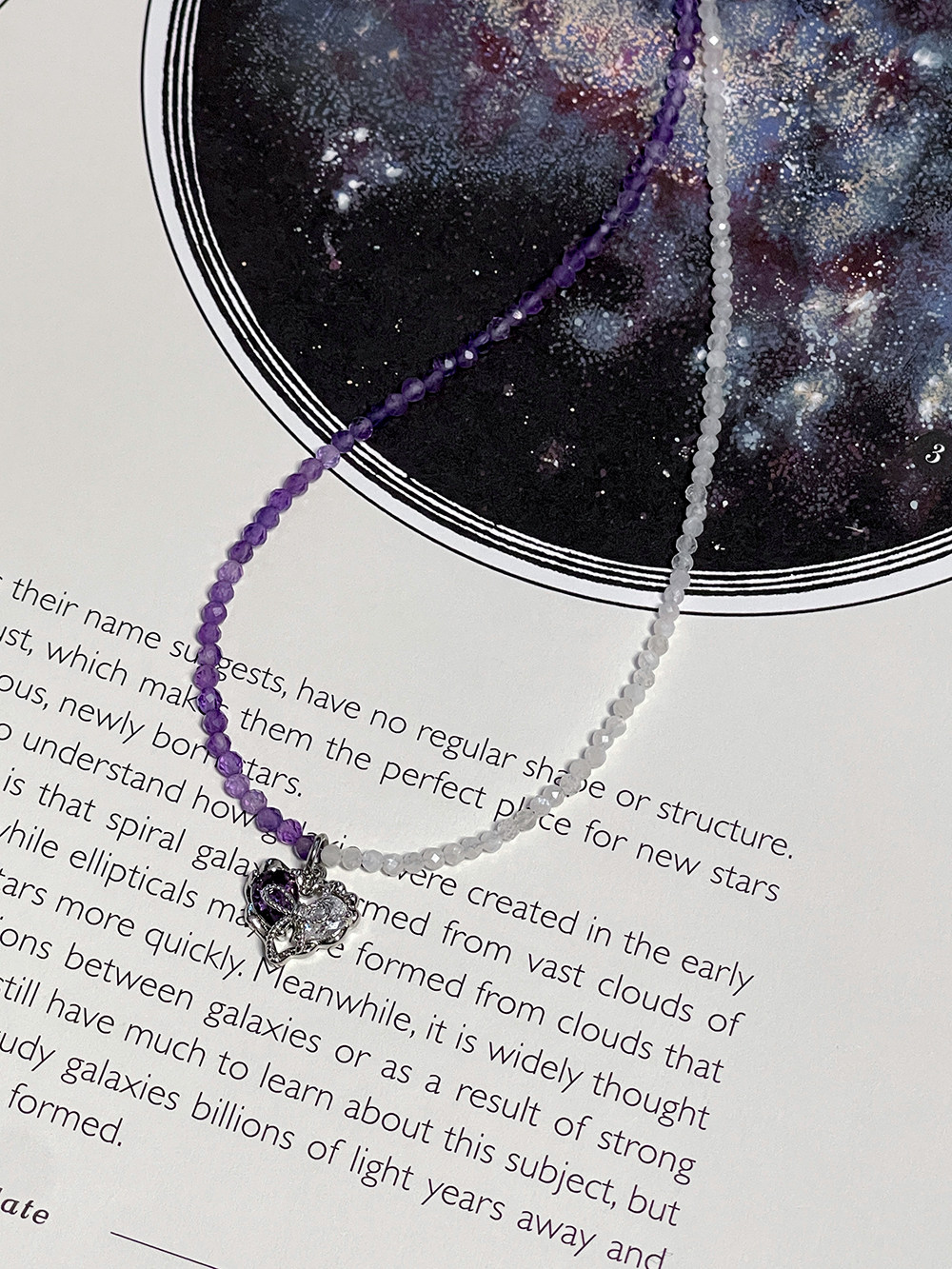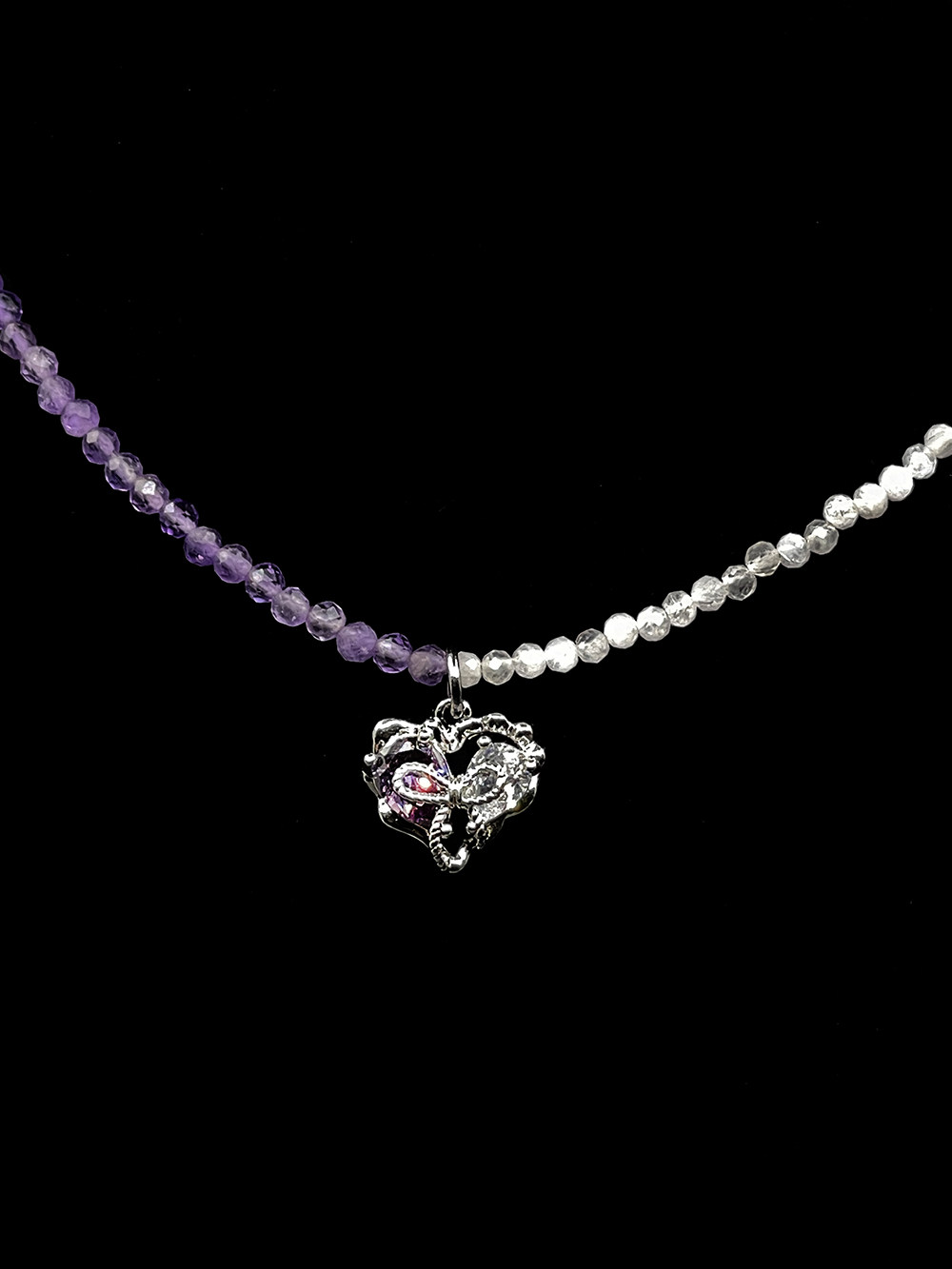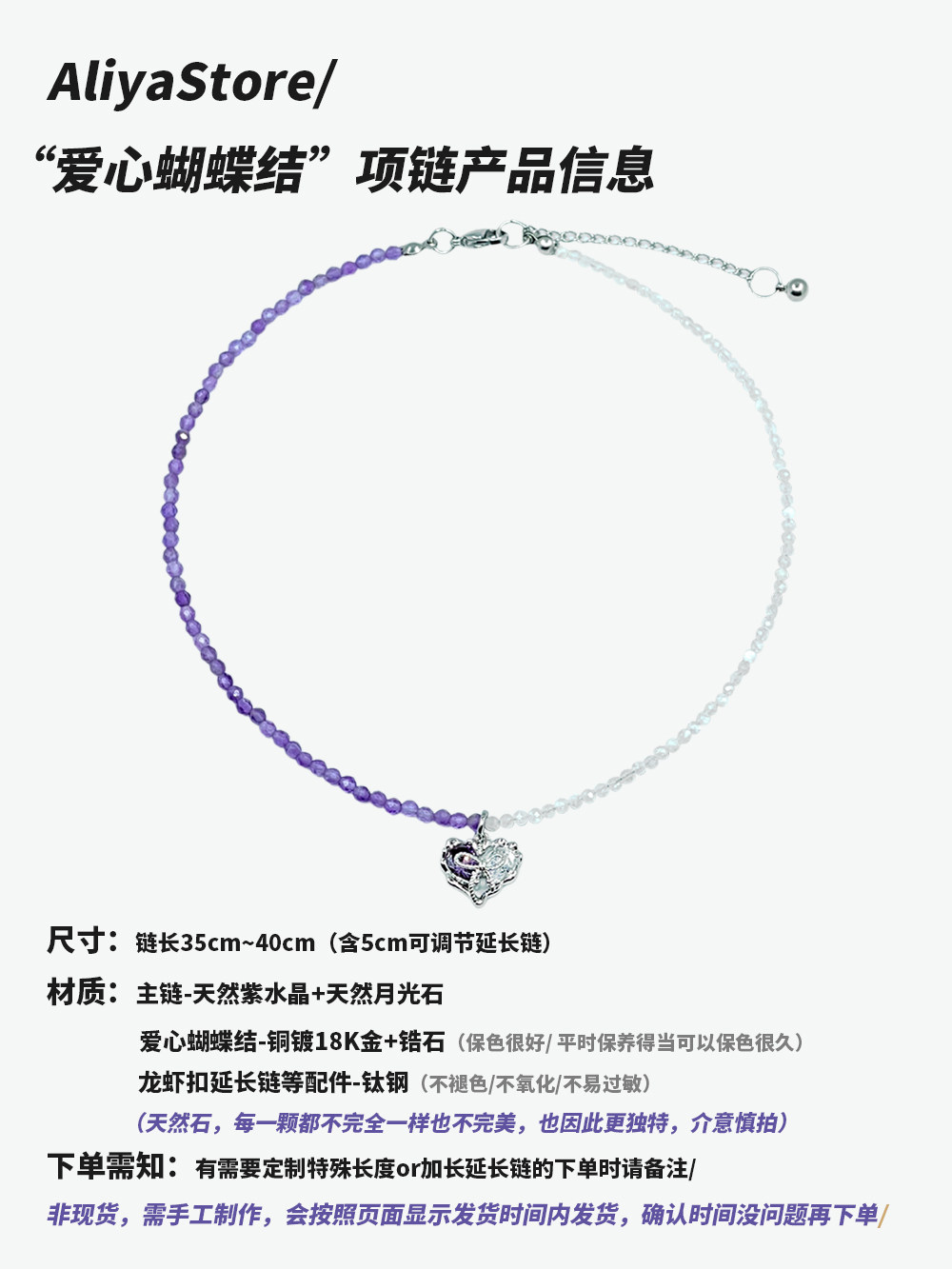 AliyaStore原创手作爱心蝴蝶结拼接项链天然紫水晶月光石锁骨链