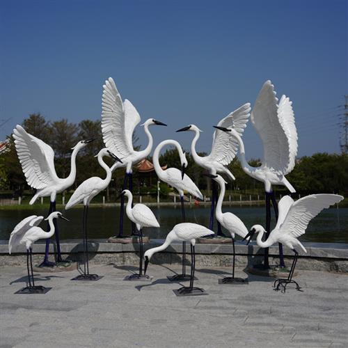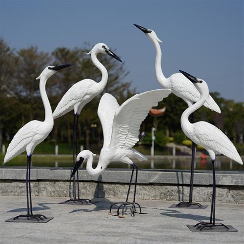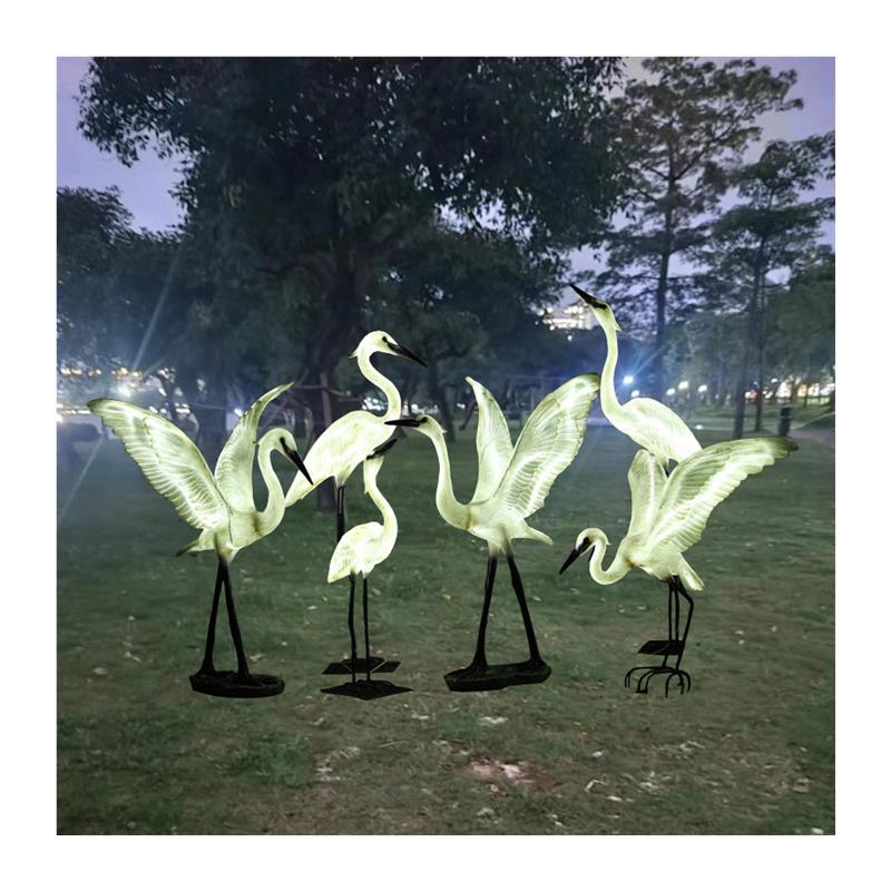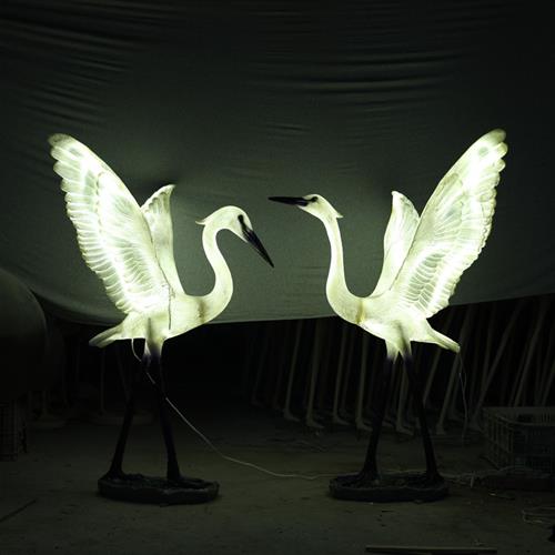 户外可发光白鹭雕塑玻璃钢园林水景装饰美陈庭院草坪仿真鸟类摆件