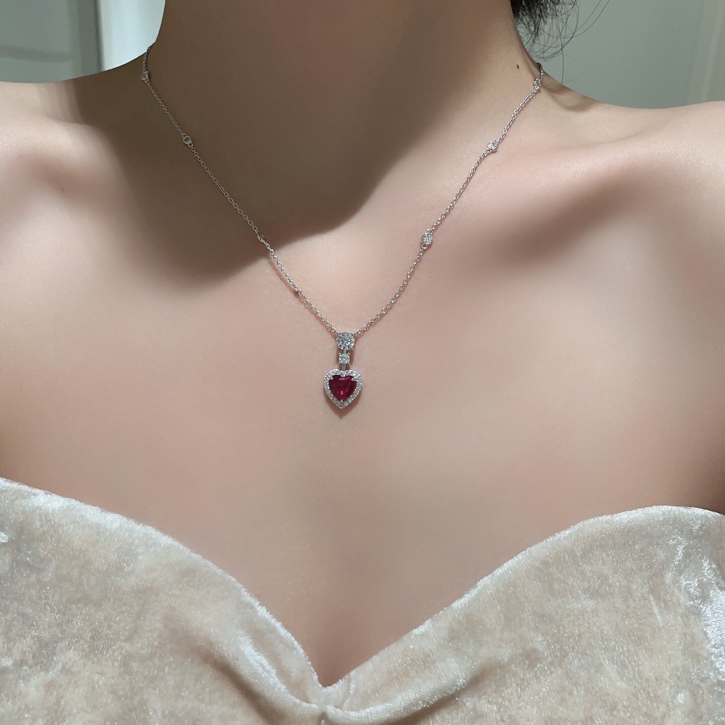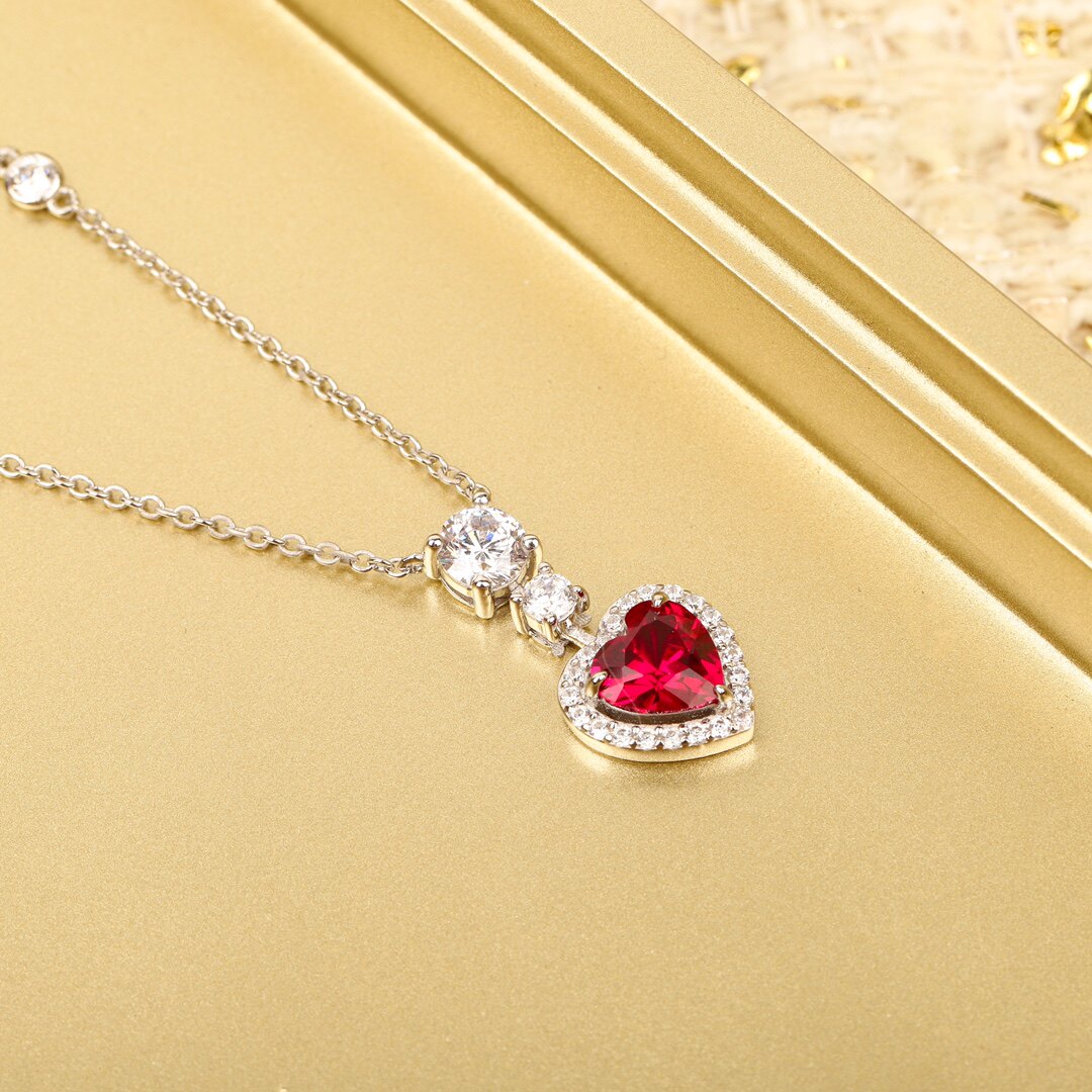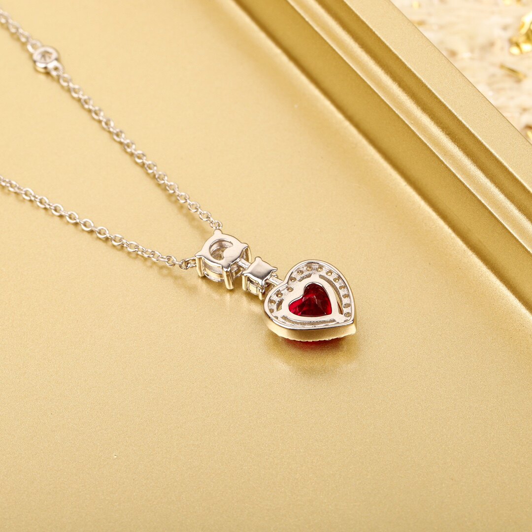 高定爱心红宝石项链吊坠】通体925纯银镀K金网红明星千金轻奢颈链