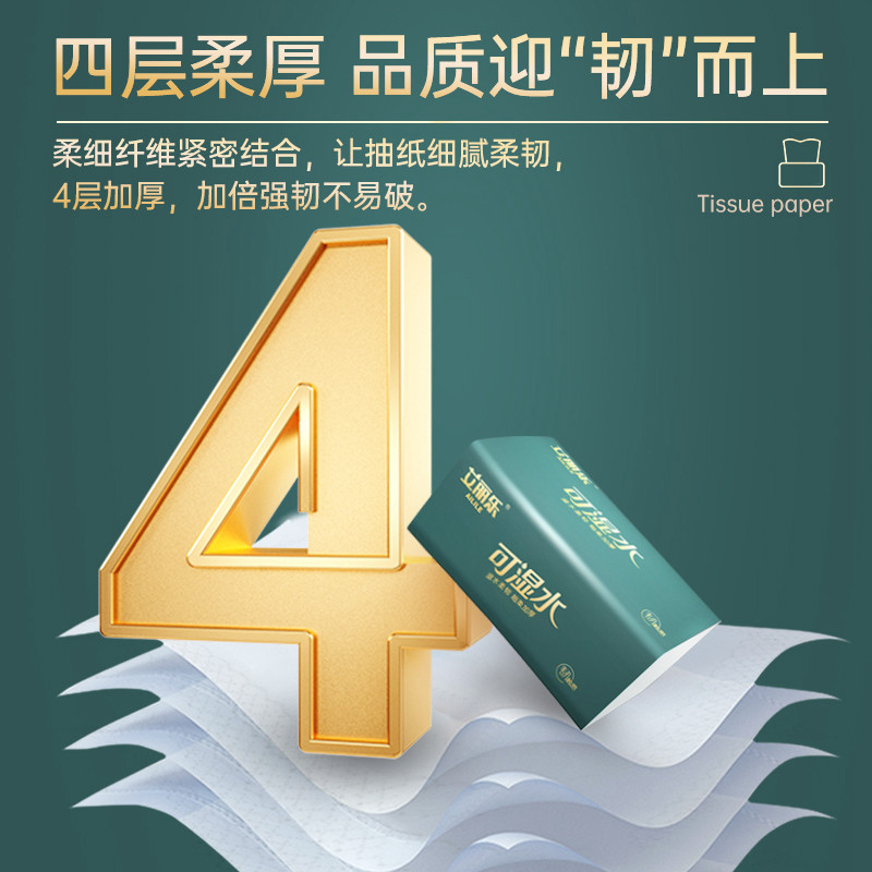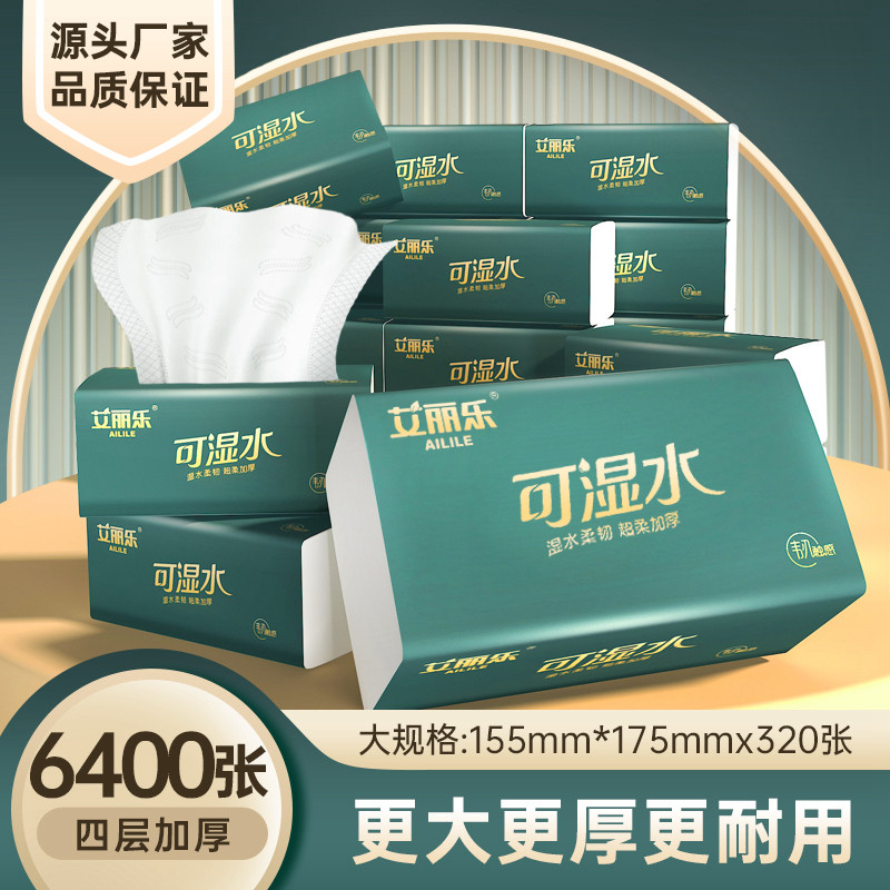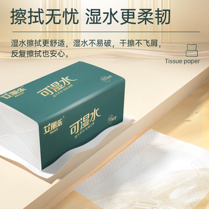 艾丽乐可湿水抽纸大尺寸家用纸巾加厚餐巾纸实惠装卫生纸大包纸抽