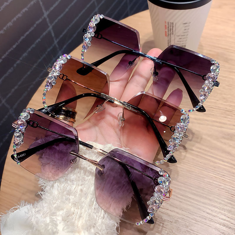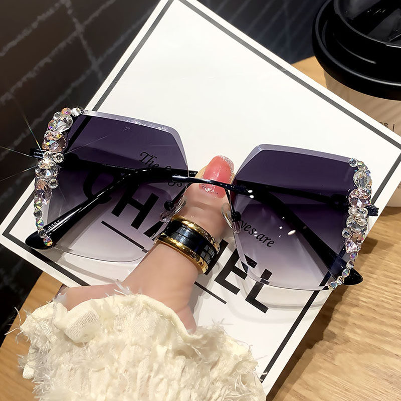 2026新款无框太阳镜水钻防紫外线墨镜女大框网红同款显瘦遮阳钻潮