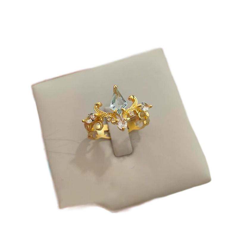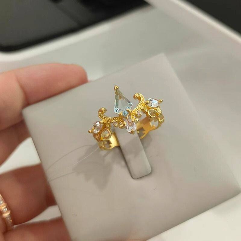 中古蓝色闪钻辛德瑞拉戒指复古vintage宫廷风开口食指戒