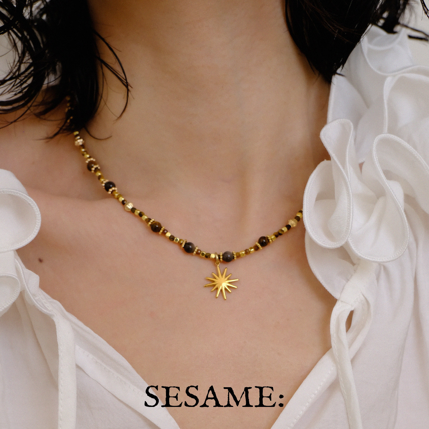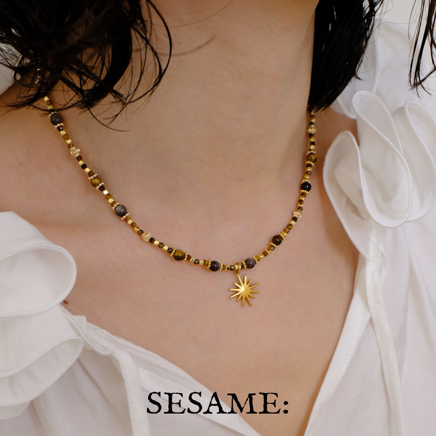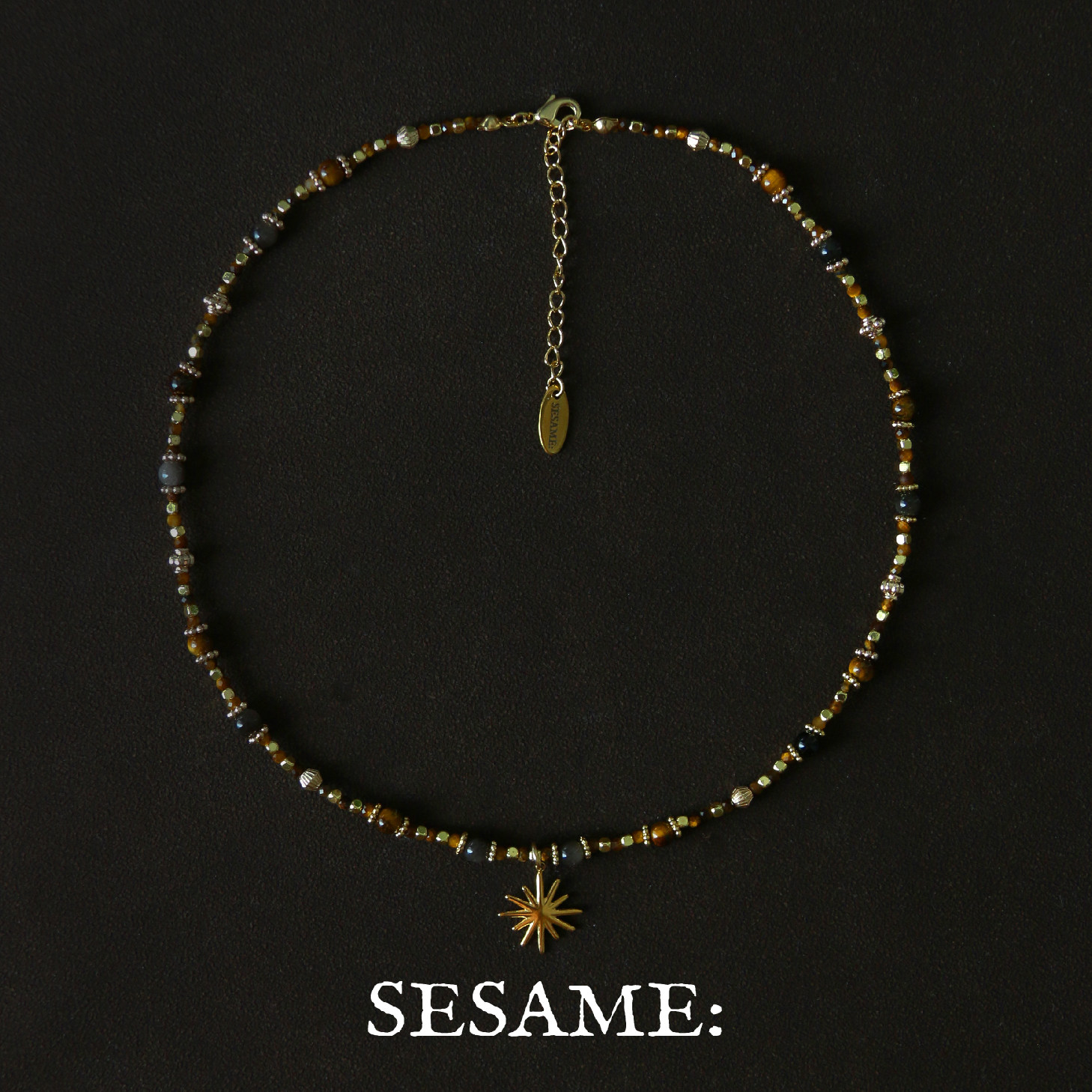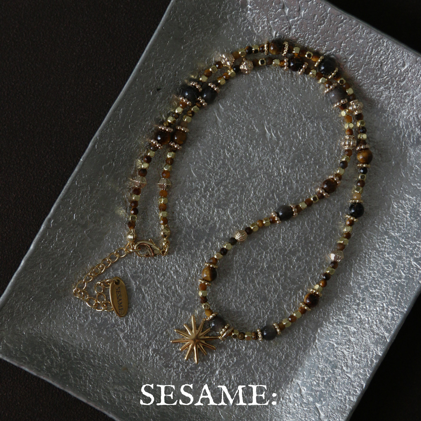 「圣诞礼物」原创设计虎眼石串珠星芒吊坠毛衣链女金莫瑞风高级感