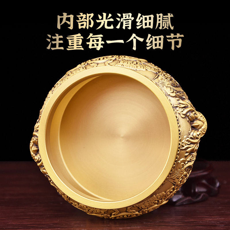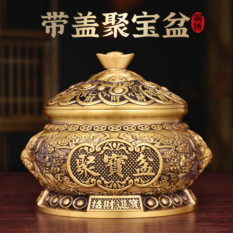 带盖聚宝盆摆件纯黄铜金蟾元宝结婚陪嫁铜制有盖存钱罐客厅装饰