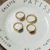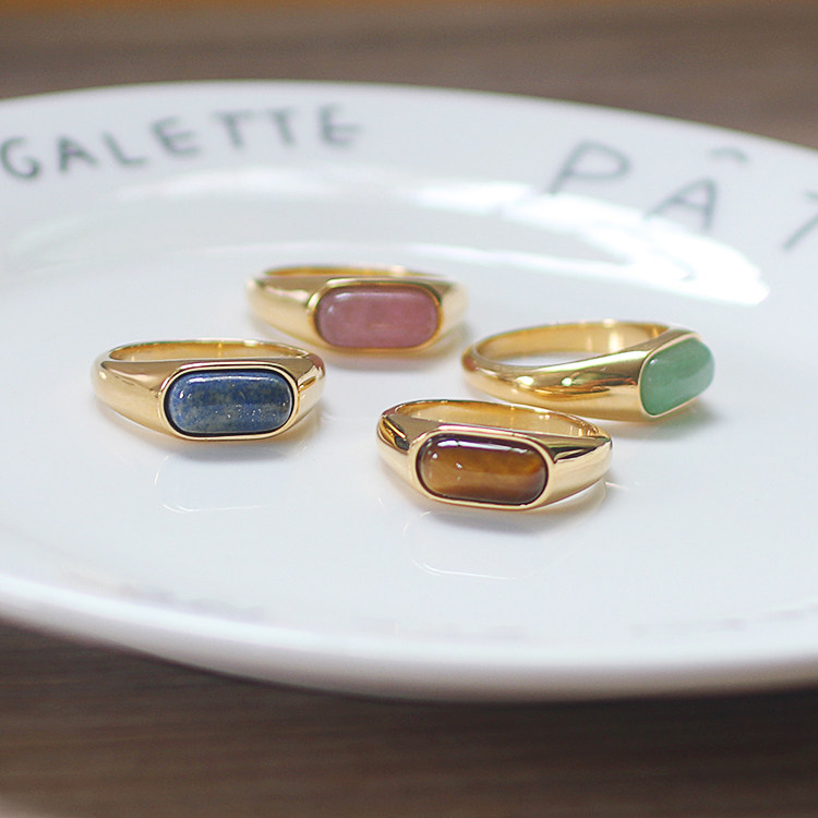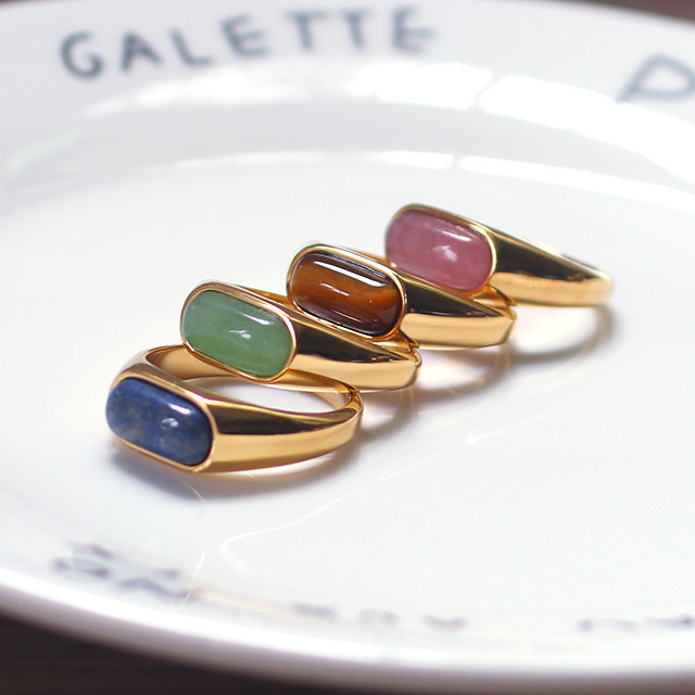 天然虎眼石青金石玉髓戒指男女通用钛钢镀金马鞍窄款小众个性戒子