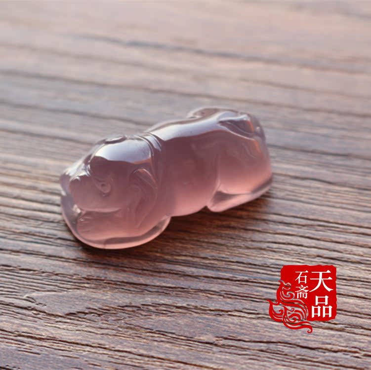 天然原色无烧冰透帝王紫玉髓玛瑙精雕小狗(旺财)生肖狗吊坠挂件