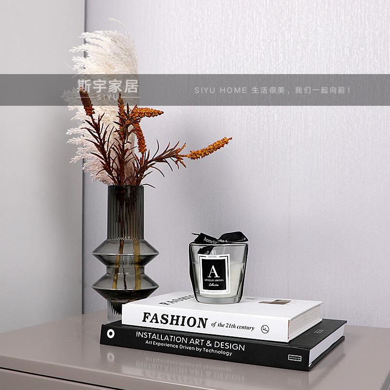 样板房主卧床头柜摆件飘窗茶几花艺相框杂志道具家居饰品软装组合