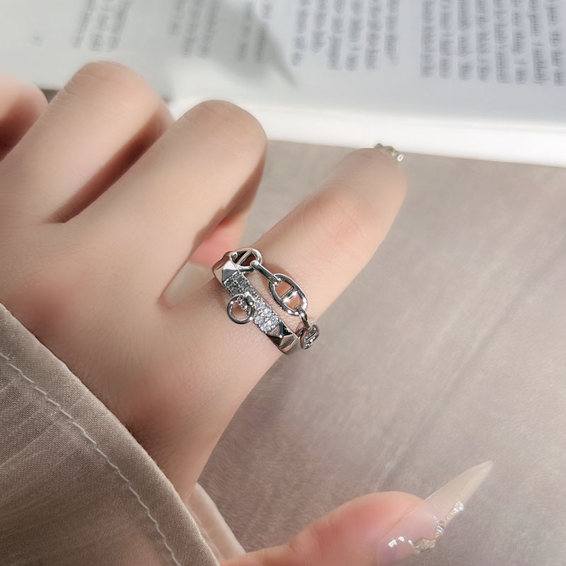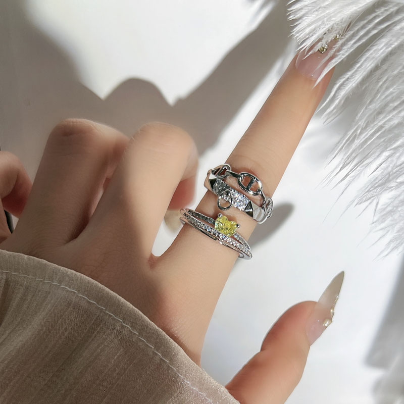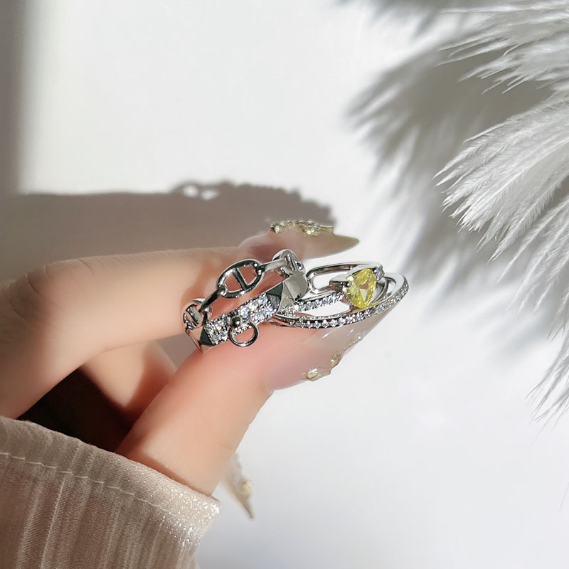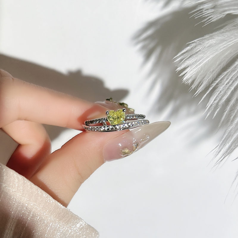 网红爆款双层猪鼻子满钻时尚戒指女欧美风精致甜酷爱心黄钻指环潮
