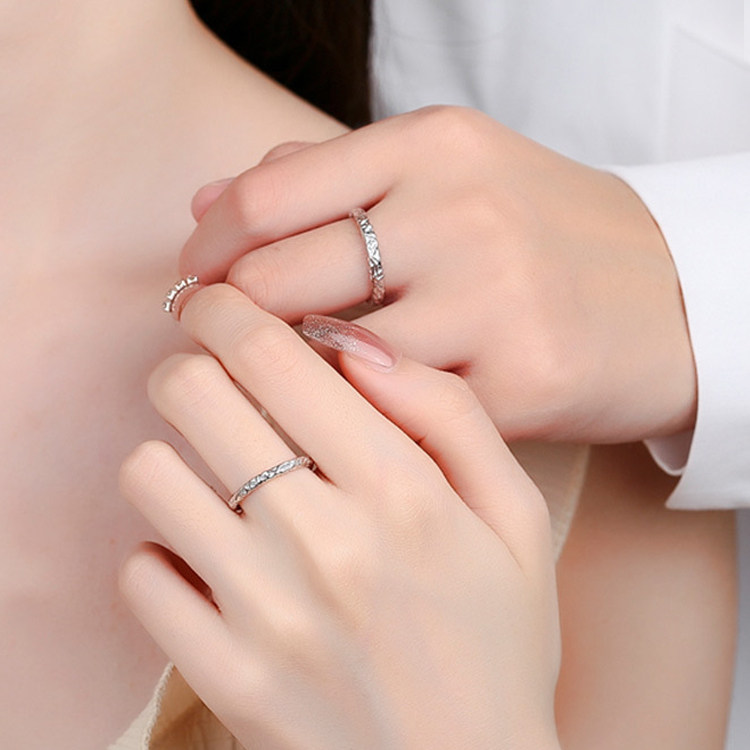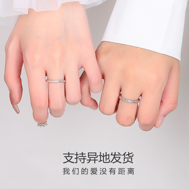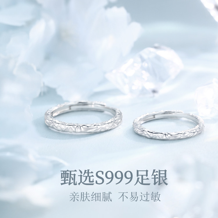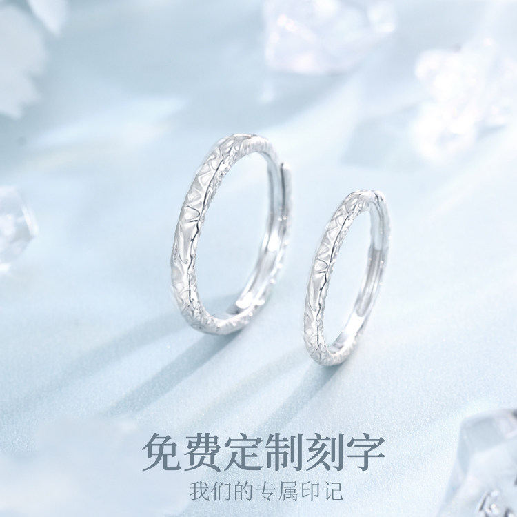 999足银涟漪情侣款纯银戒指男女一对2023新款水波纹冰川刻字对戒