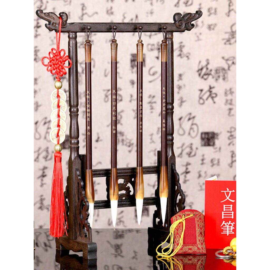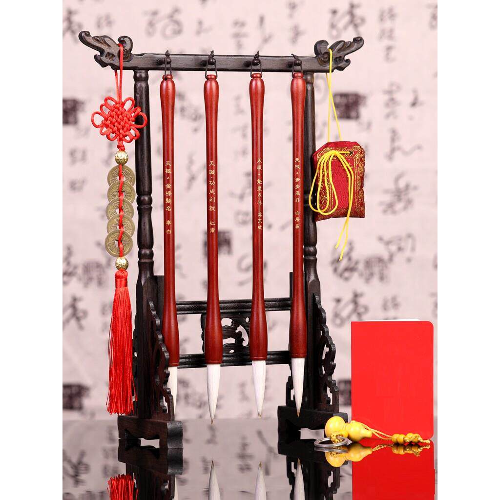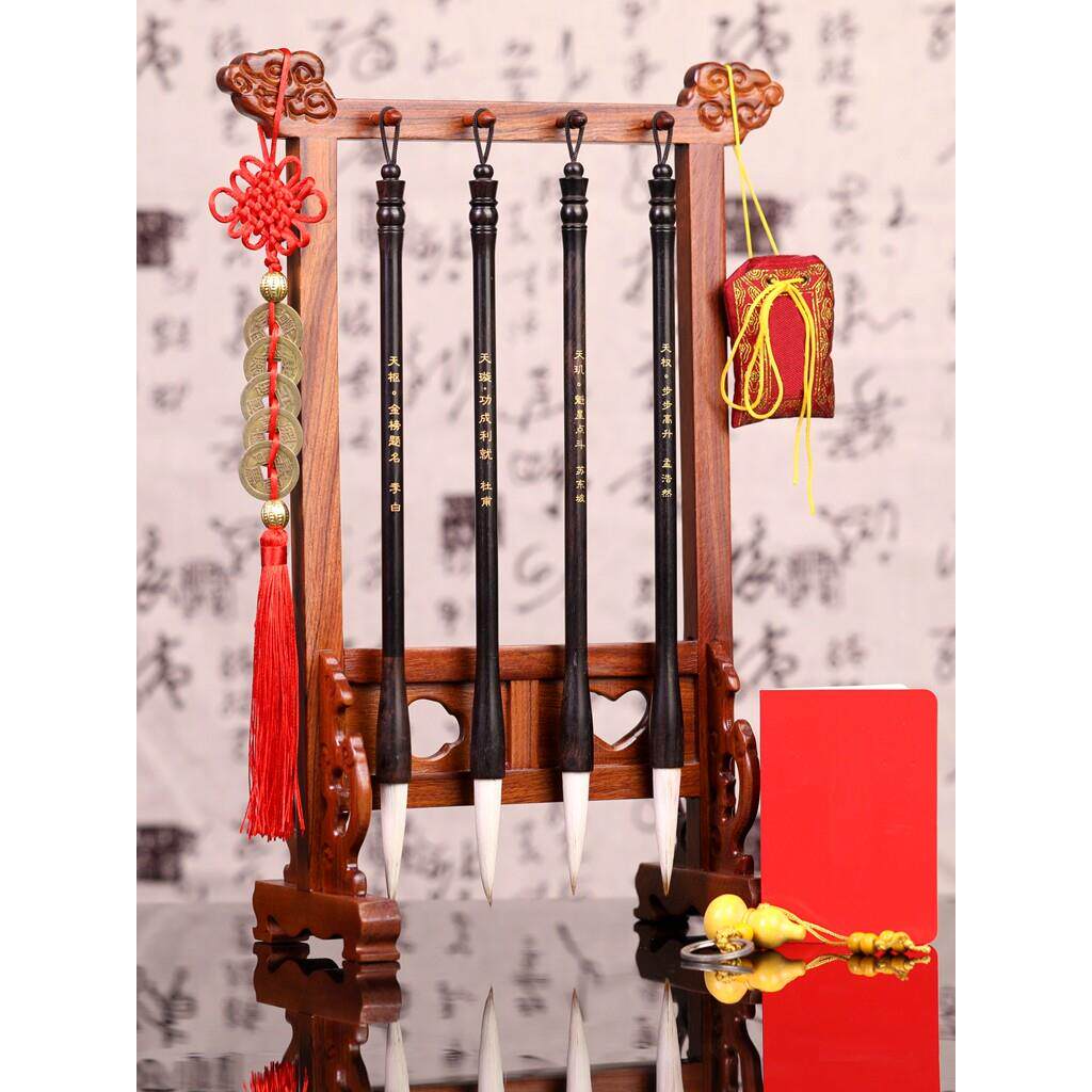 文昌笔学生书桌摆件实木笔架挂4支毛笔刻诗人名字局文房四宝新品