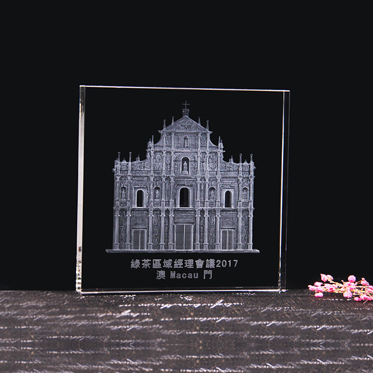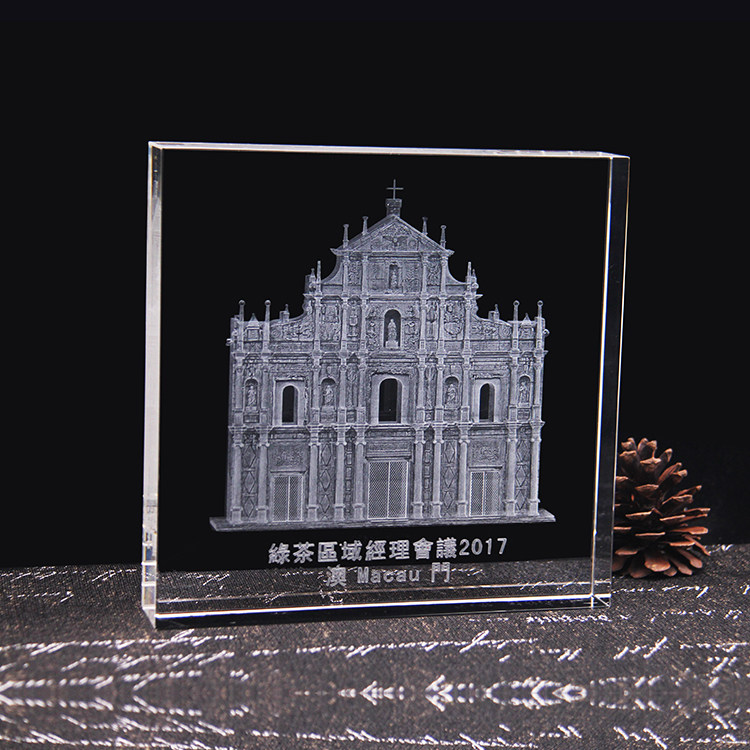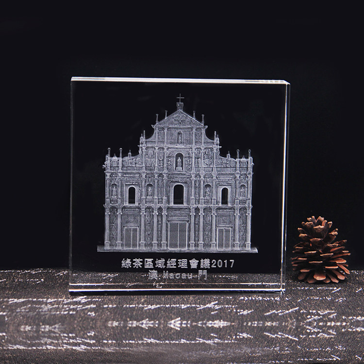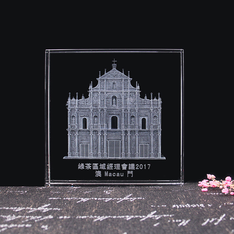 澳门水晶内雕大三巴牌坊微版Q版工艺品世界环球旅游纪念收藏品