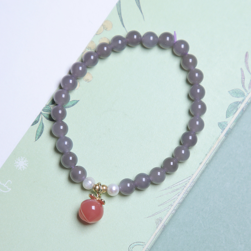 珪宝和田玉烟紫色圆珠手串女士天然玉石玉手链直径约6mm带证书