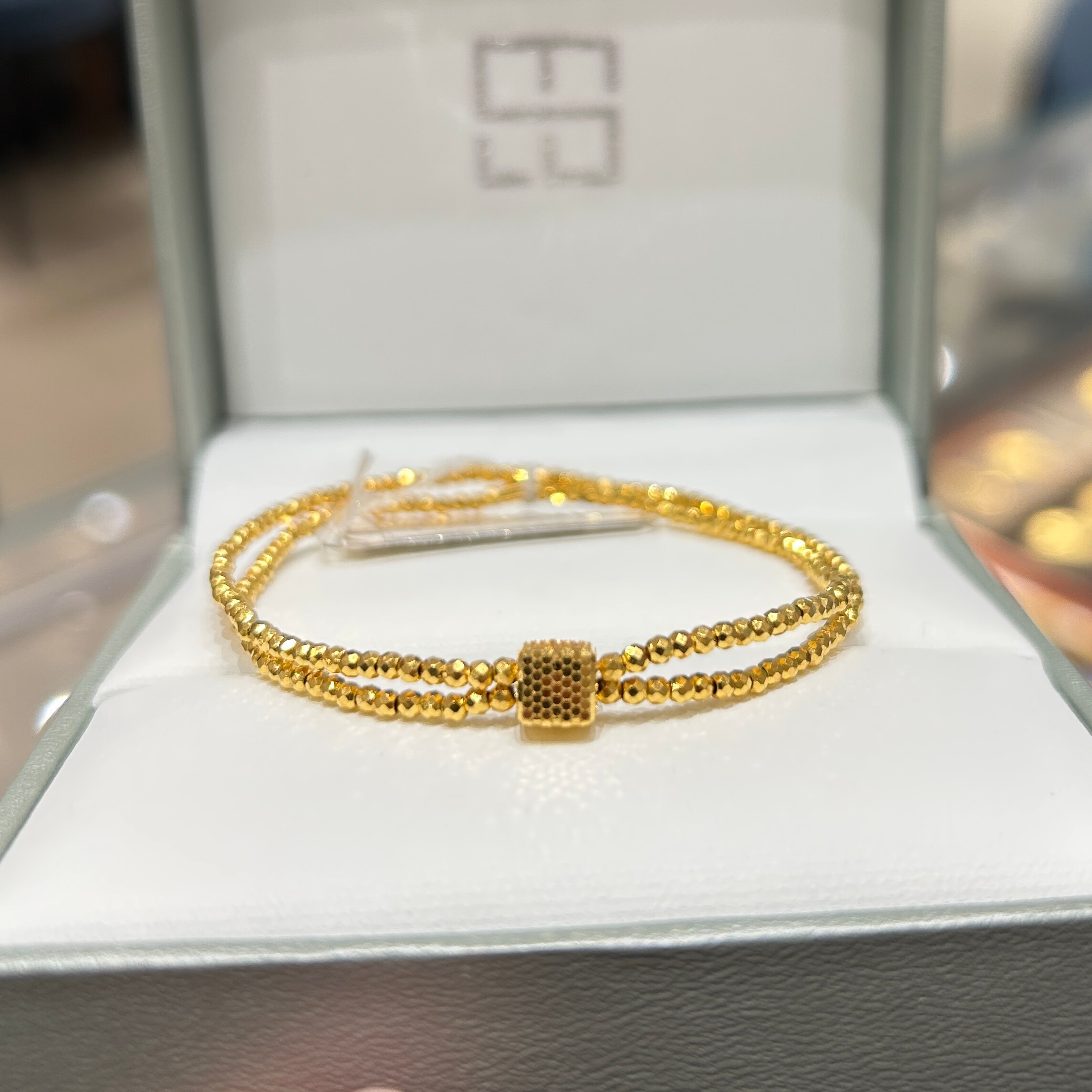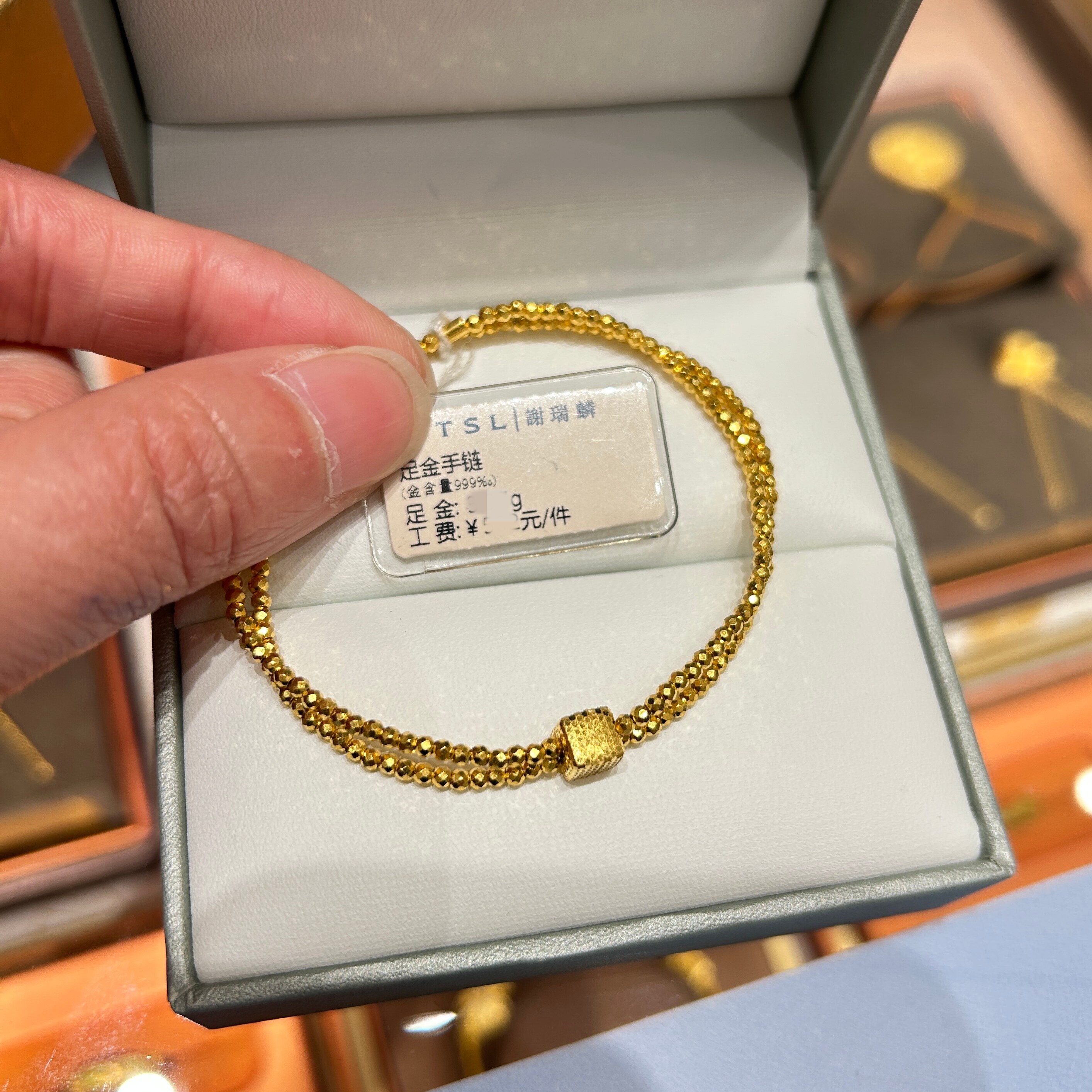 TSL谢瑞麟代购 足金999爆闪蹦迪方块黄金双层手链手串女 专柜正品