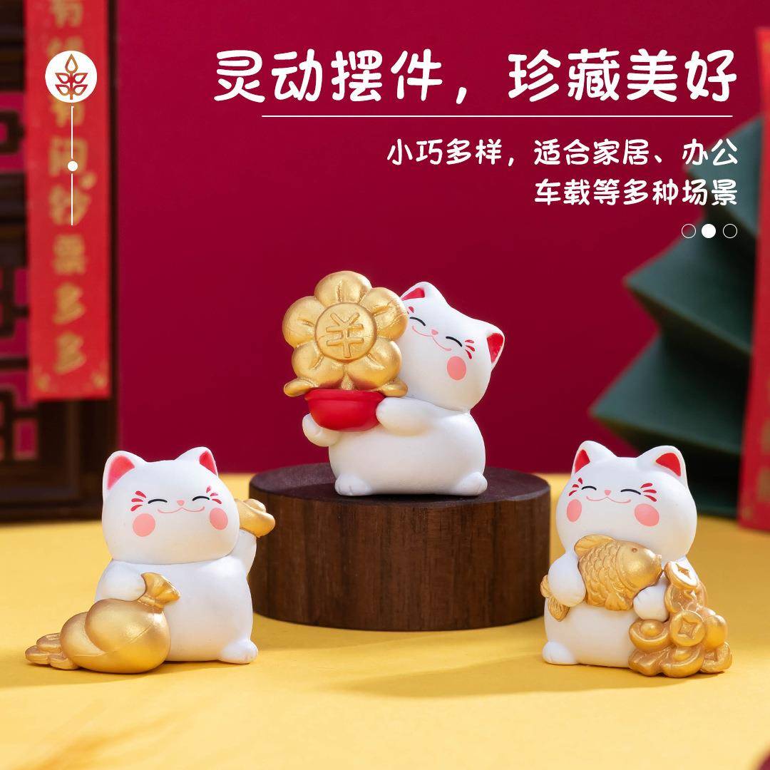 微景观创意可爱招财猫公仔 diy装饰品配件迷你发财桌面车载小摆件