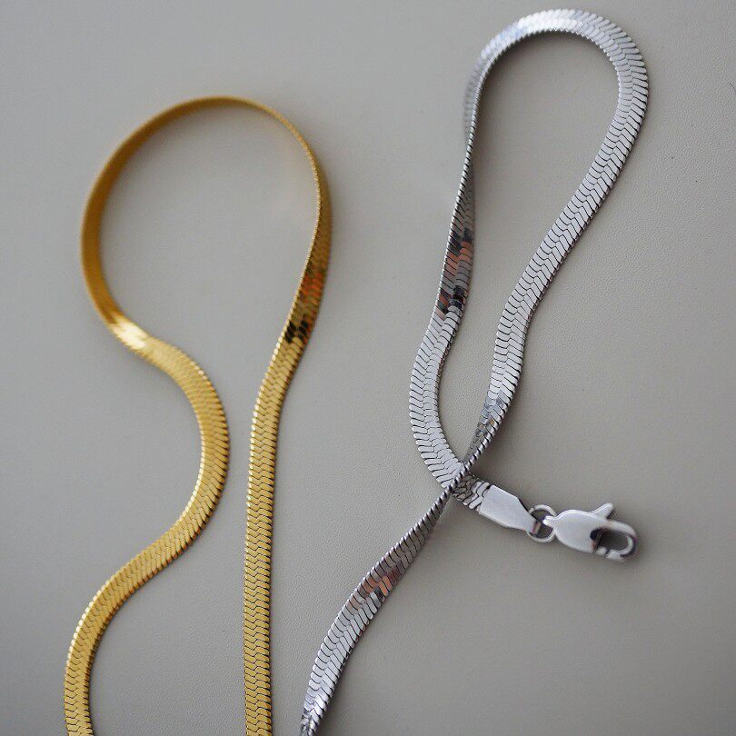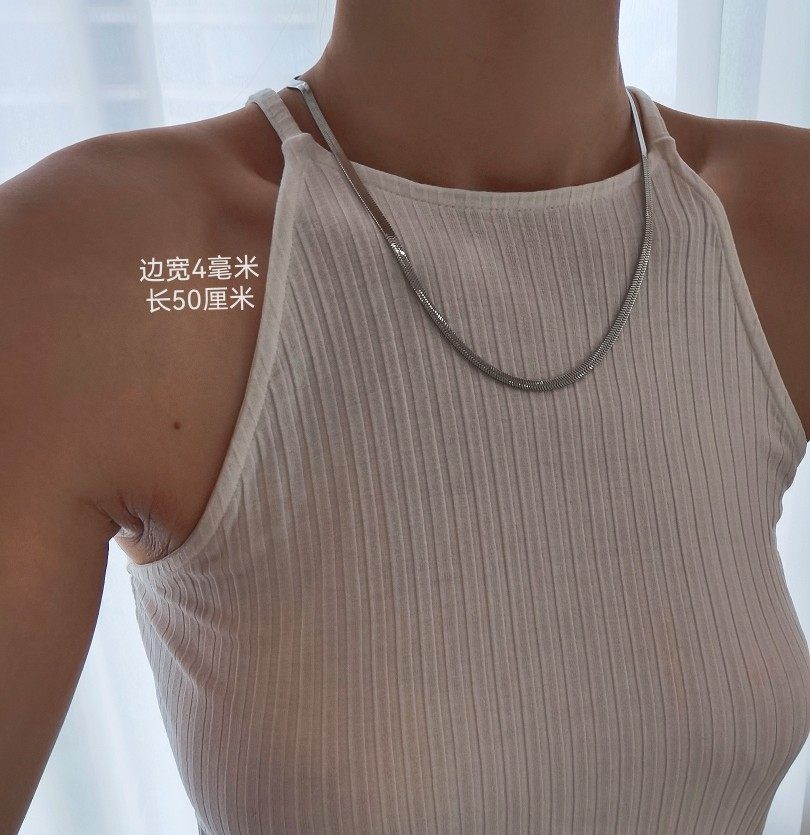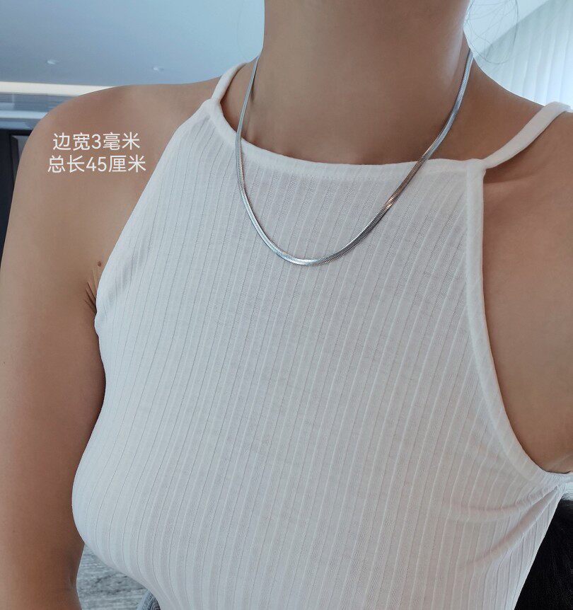 不掉色扁蛇骨链刀片链男女同款钛钢项链首饰女欧美颈链中性锁骨链