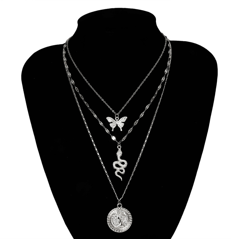 欧美饰品 个性多层蝴蝶套装爆款项饰女 复古人像浮雕吊坠项链首饰