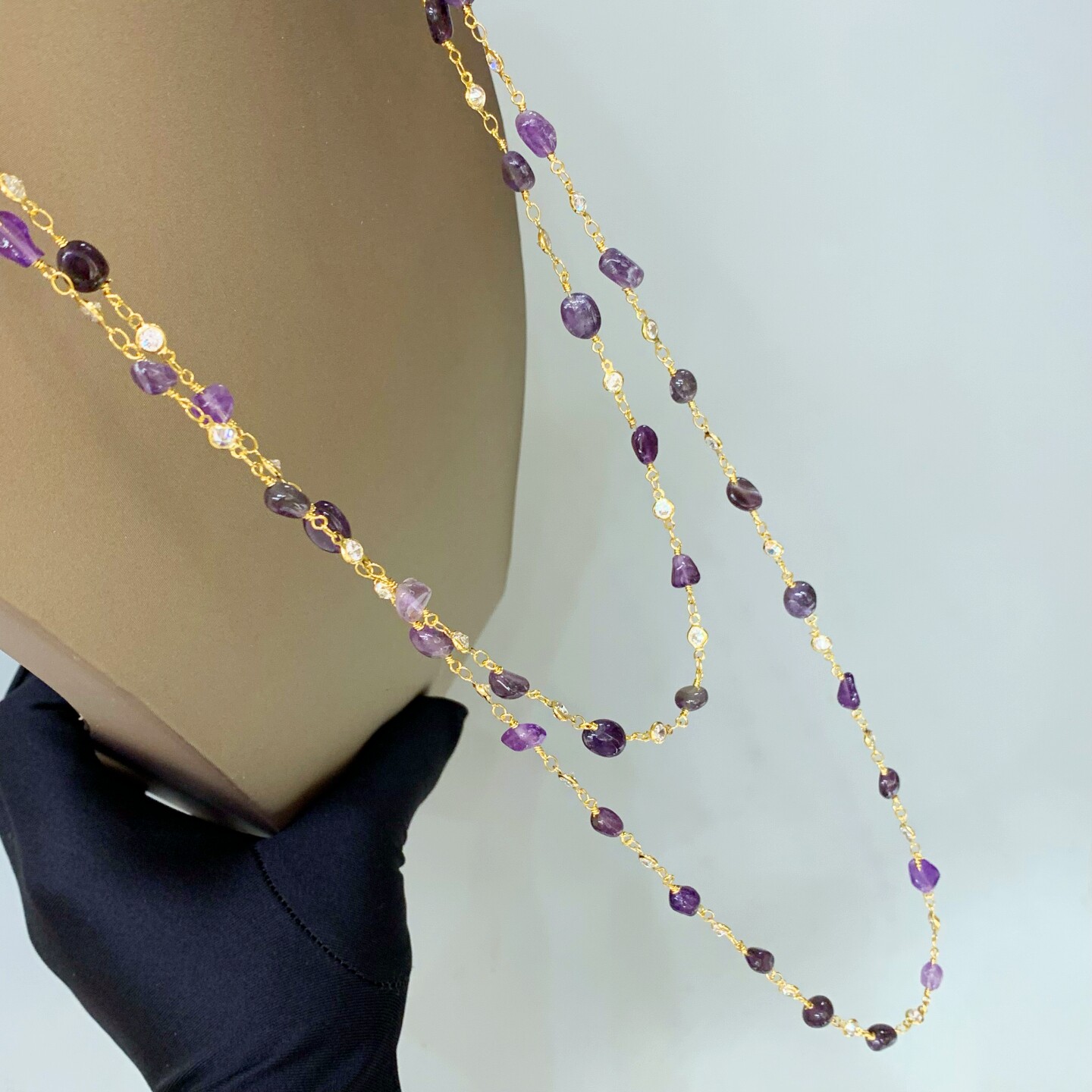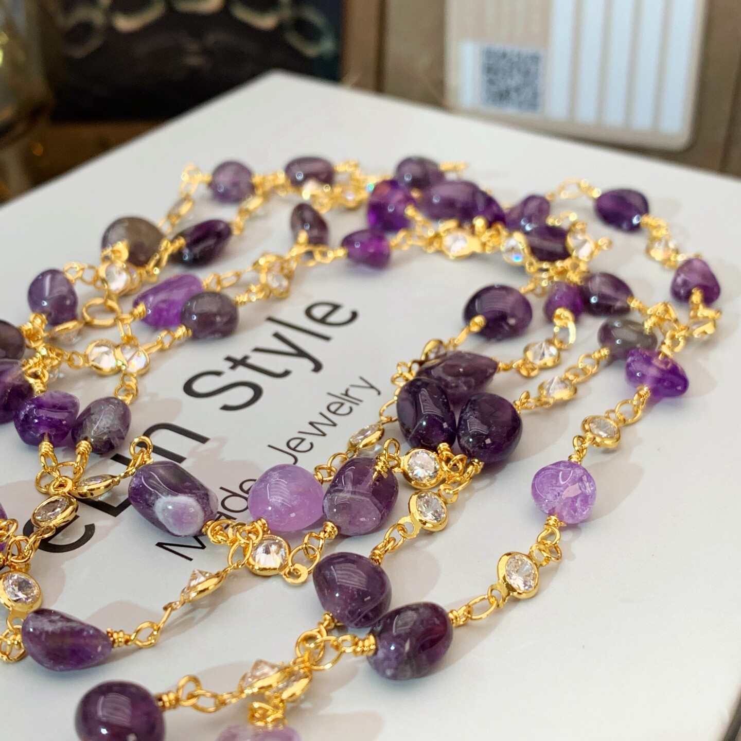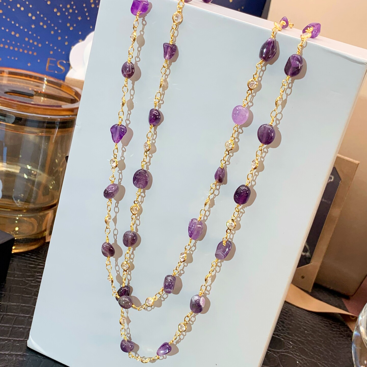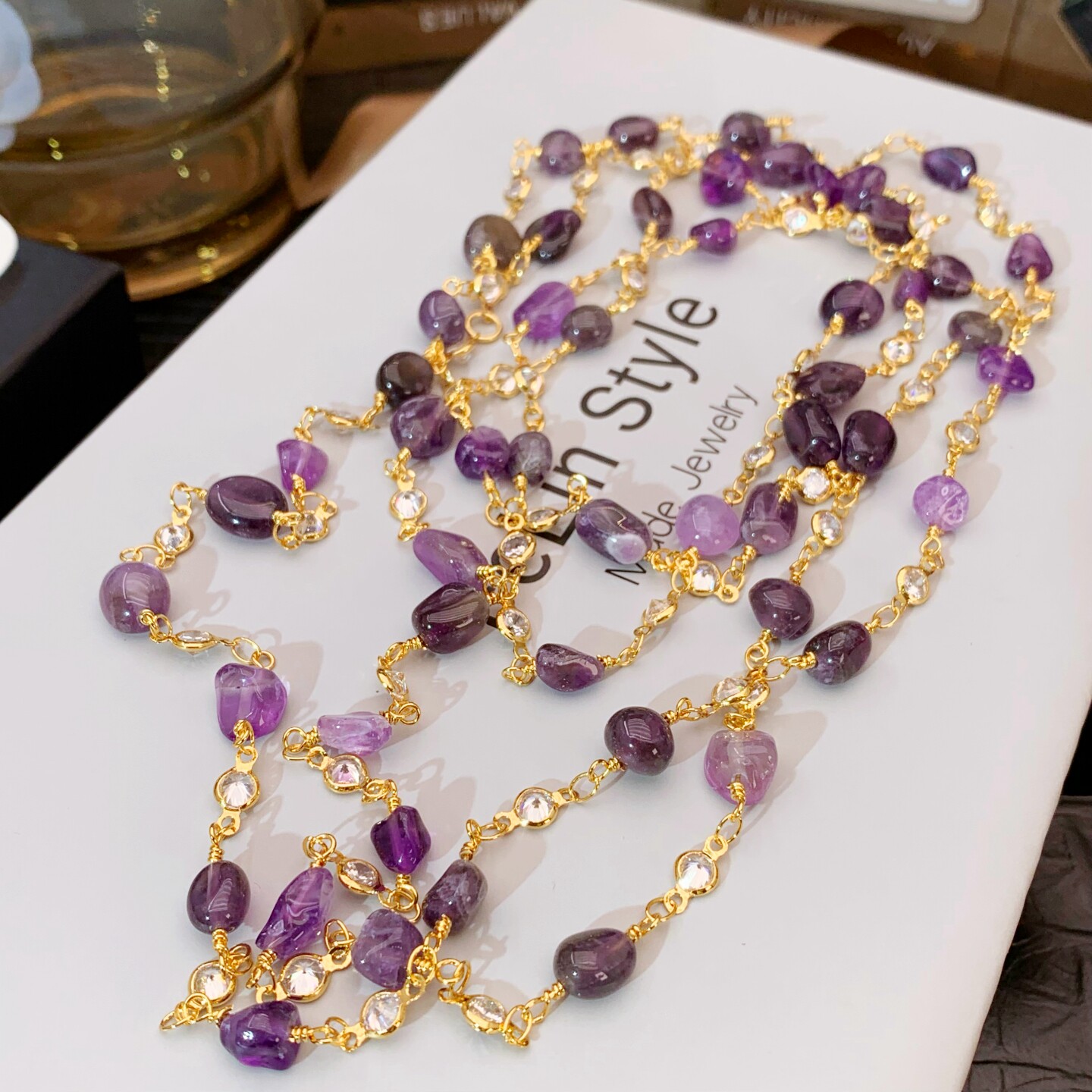 原创新中式叠戴多层复古时髦紫色闪钻闪钻长款毛衣链满钻项链小众