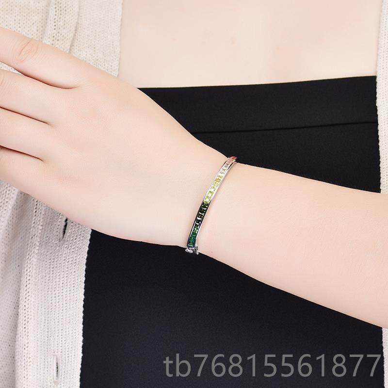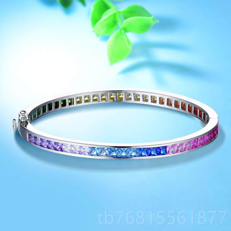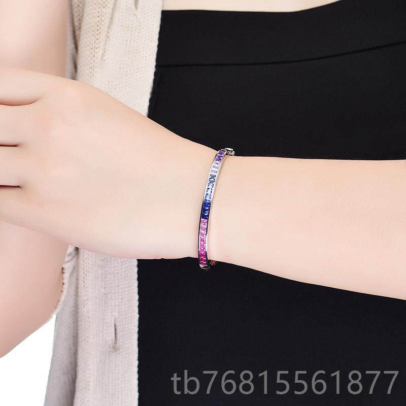 正品卓蝶珠宝纯银色镀金渐彩蓝宝石手尚镯仿宝石彩虹银饰女变时新