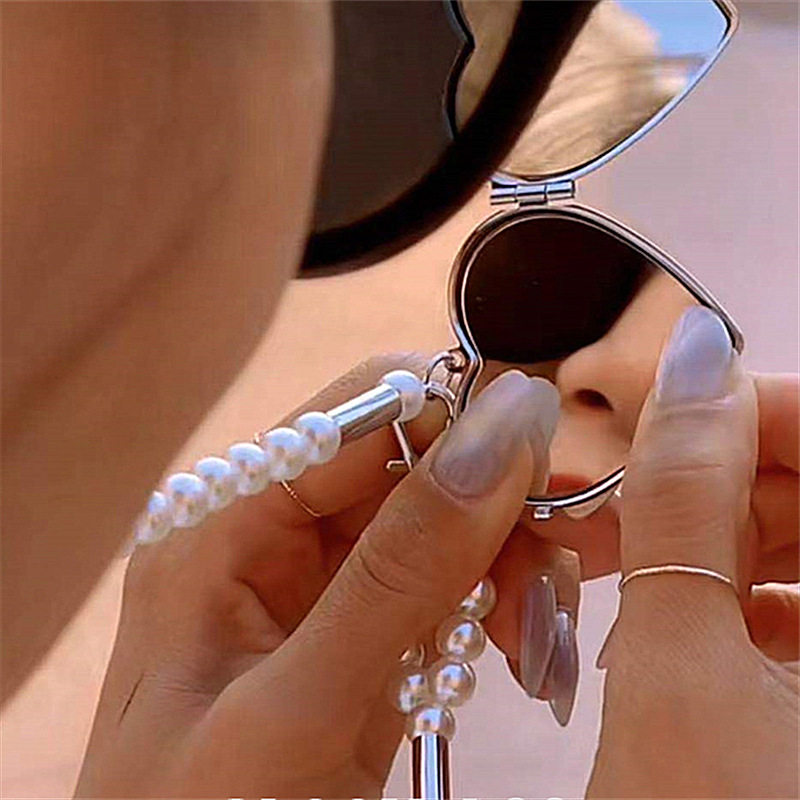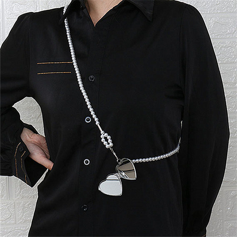 ins风珍珠腰链斜挎背带女心形镜子吊坠装饰腰带裙子西装配饰项链