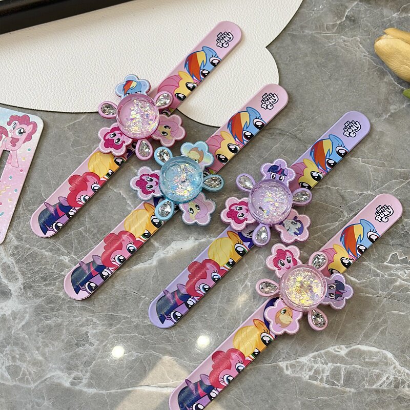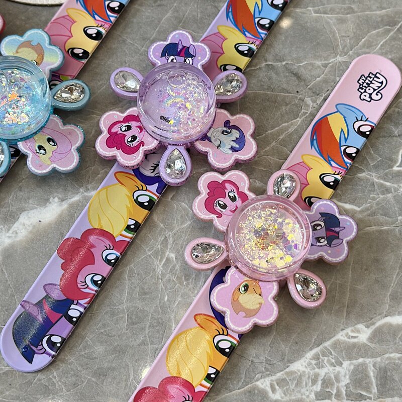 正版小马宝莉儿童啪啪圈旋转流沙拍拍手环小女孩手镯礼物公主玩具