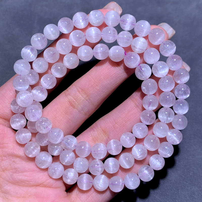 天然冰透猫眼锂辉石三圈手链紫色水晶薰衣草手串一物一图情侣礼物