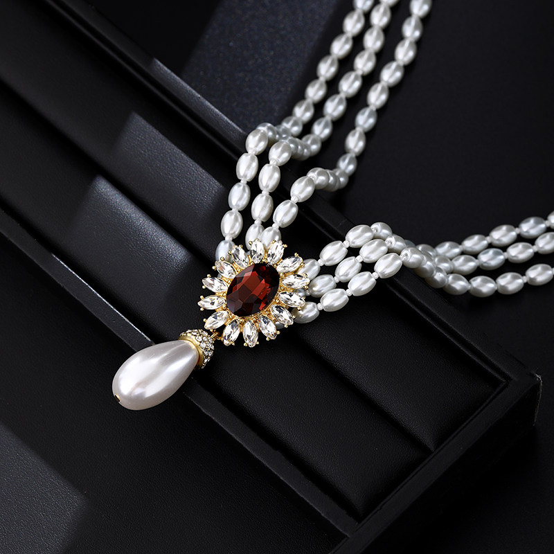 法式轻奢紫色镶钻珍珠吊坠项链女小众时尚气质锁骨链颈链配饰