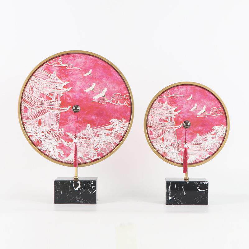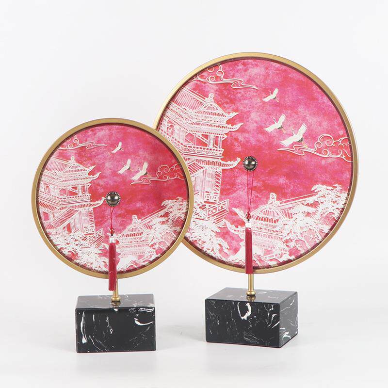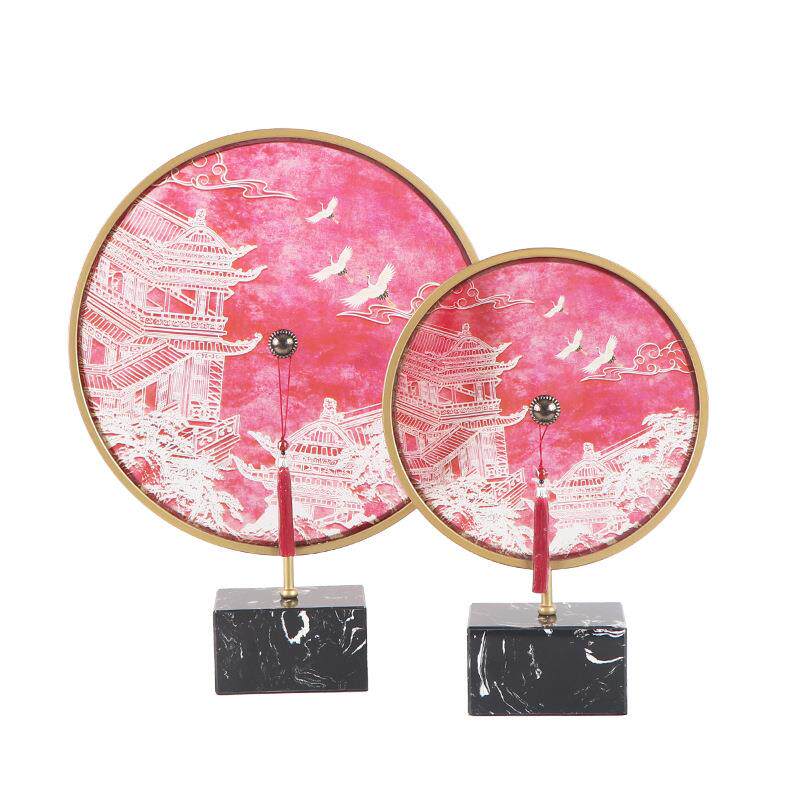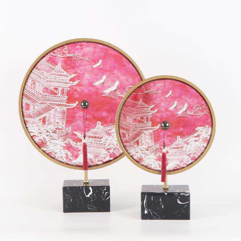新中式中国红色系屏风摆件样板间售楼处展厅酒店玄关书柜软装饰品