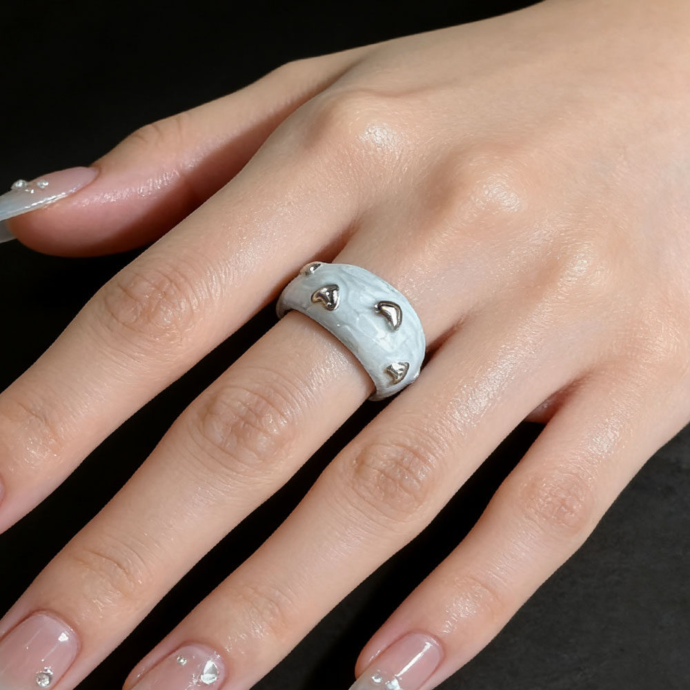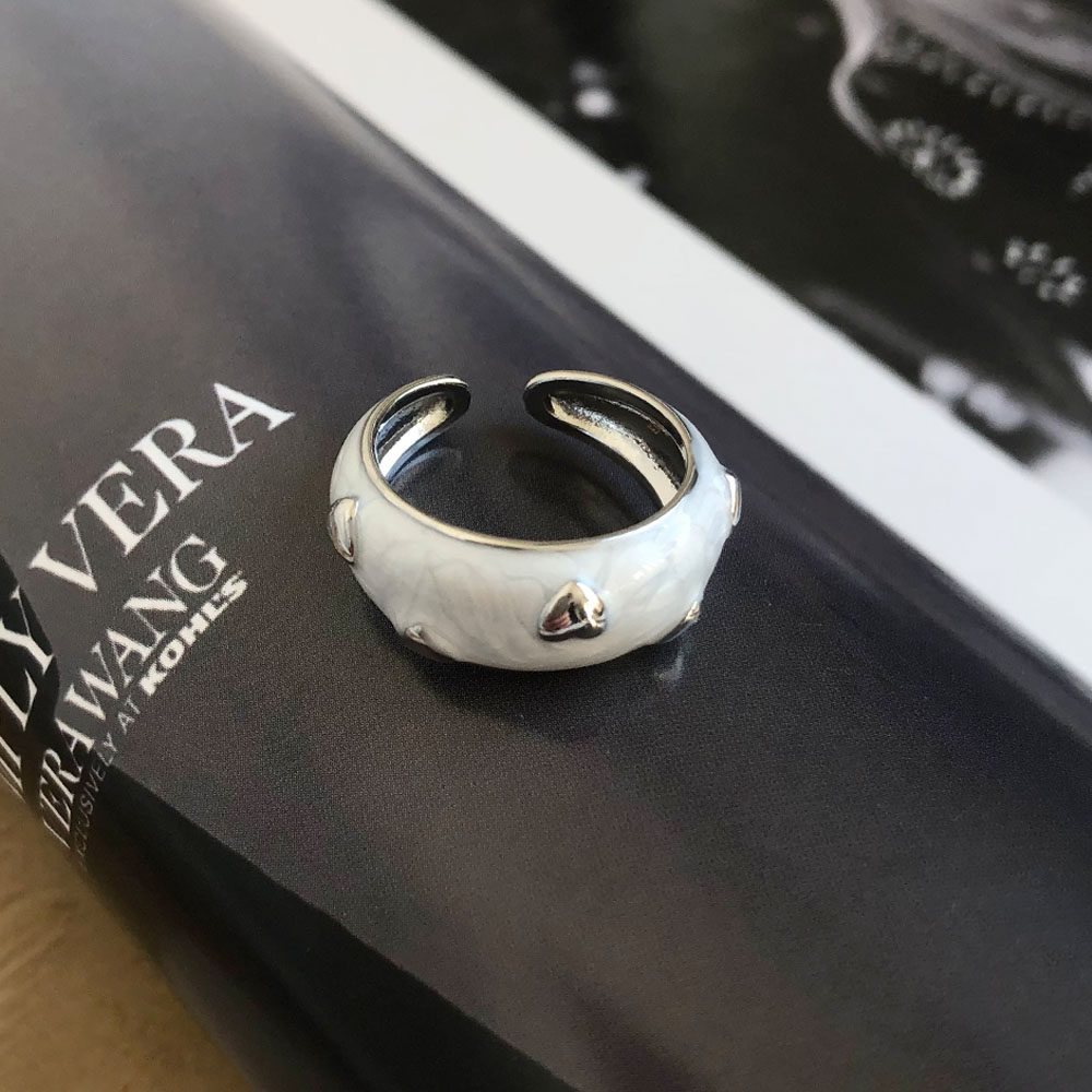 博主同款黑色滴油爱心开口戒指女小众设计精致时尚百搭食指戒指环