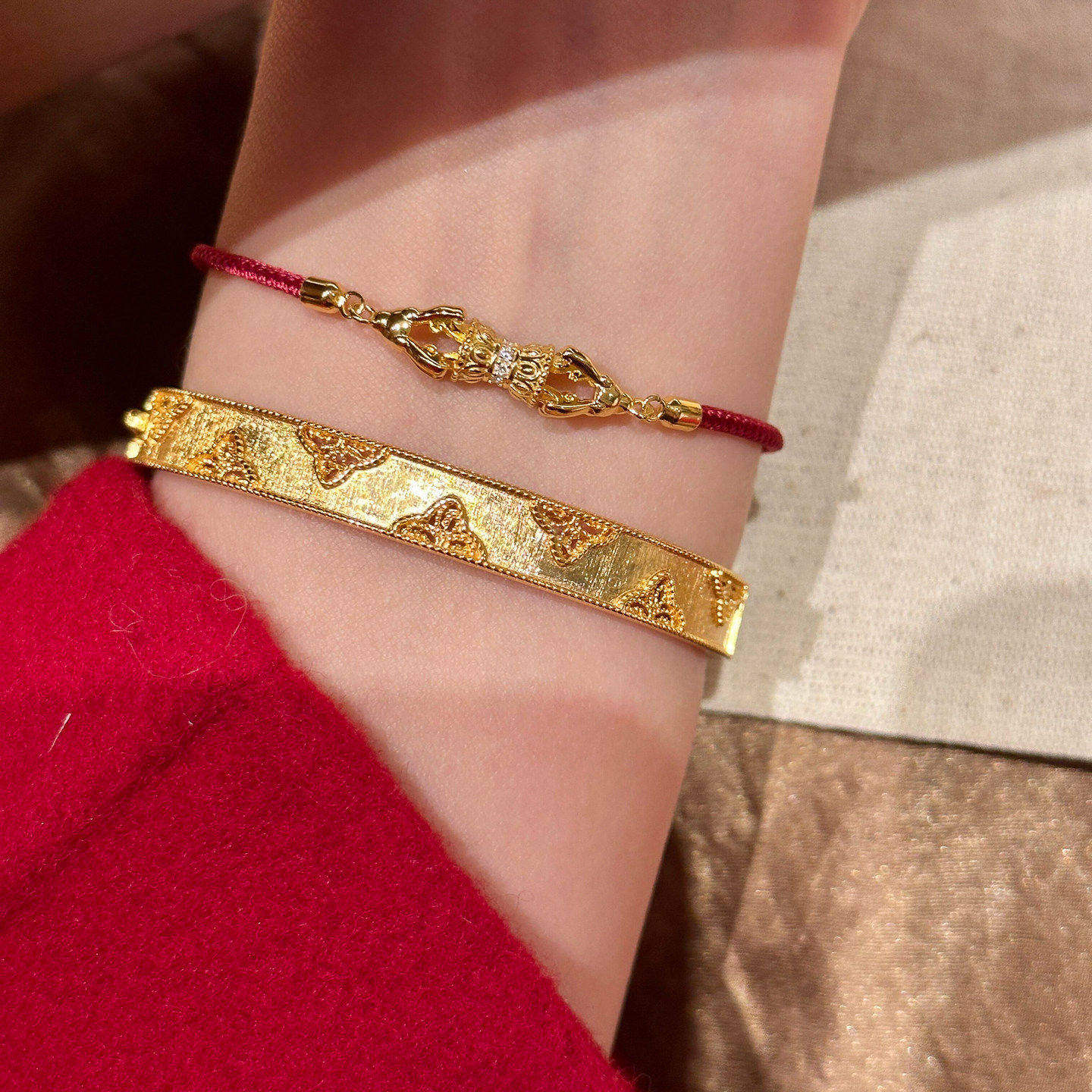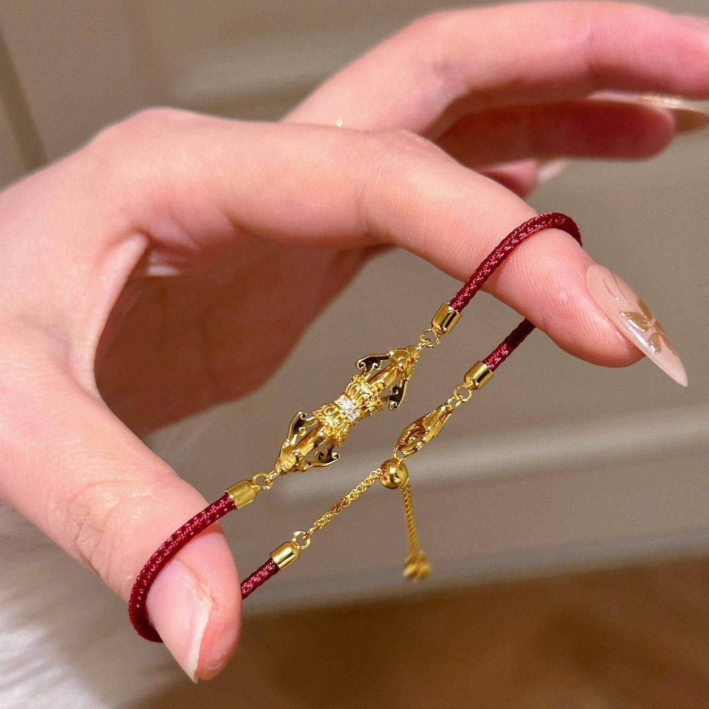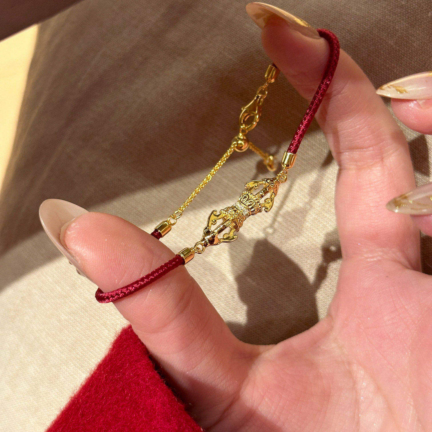 可抽拉金刚杵本命年红绳手链女轻奢小众守护好运新年喜庆红色手饰