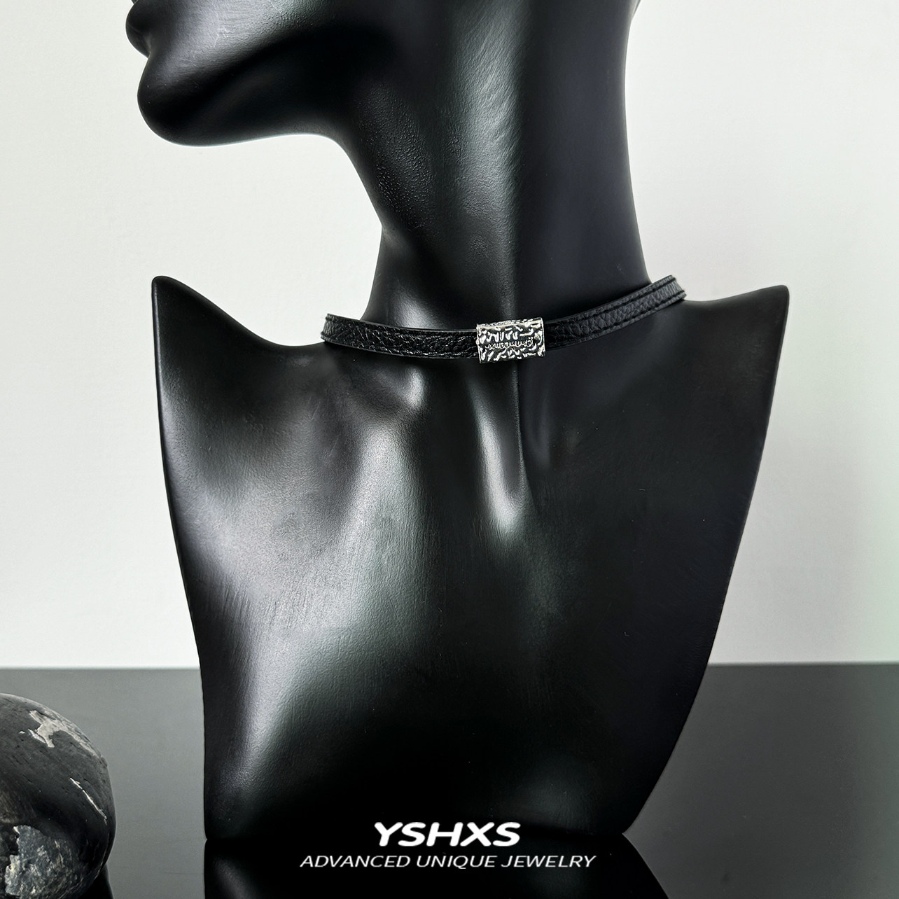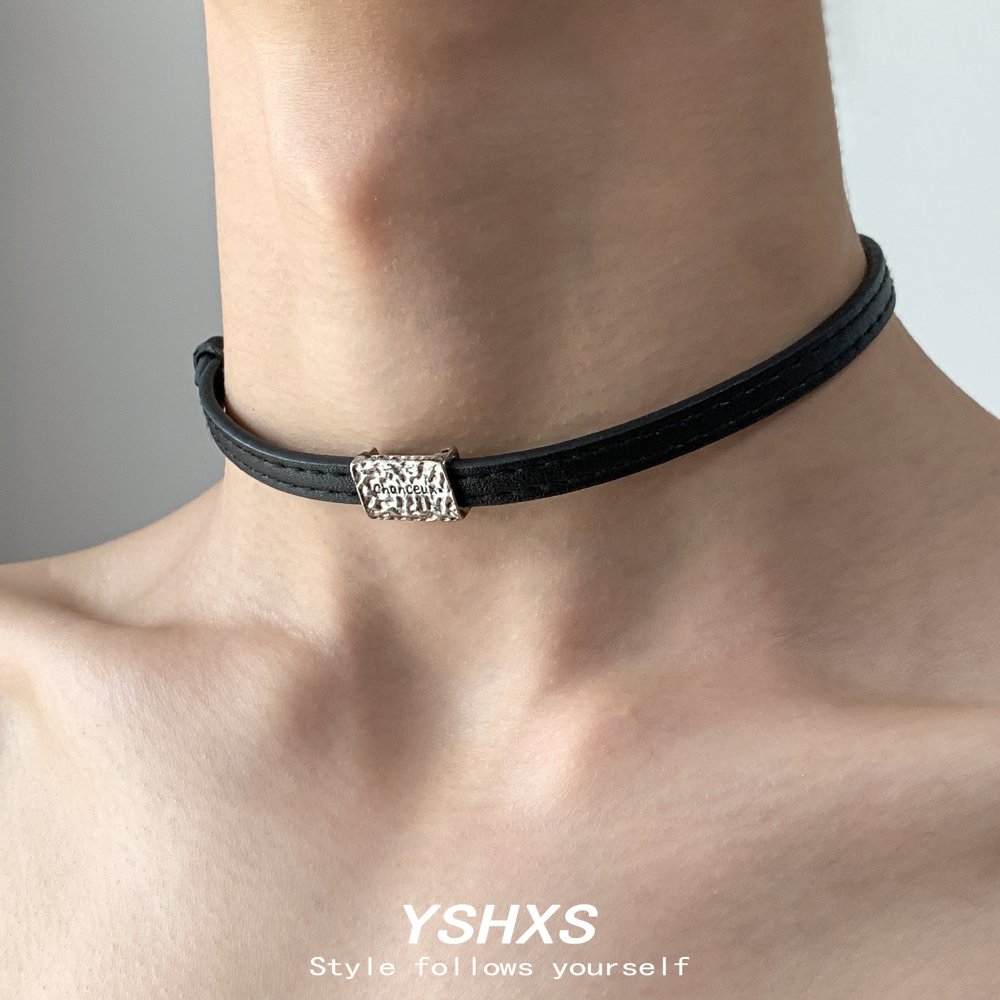 新款黑色皮绳方块项圈项链爆款百搭简约锁骨链高级感choker女颈带