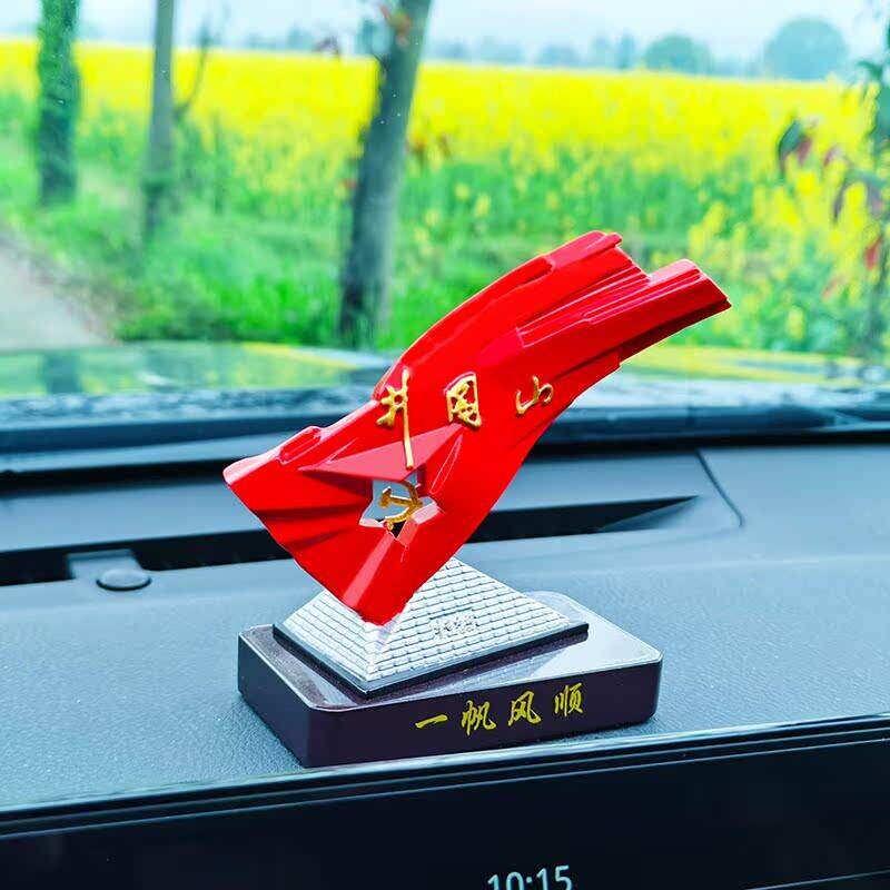 高档汽车内饰井冈山红旗雕塑车载汽车中控台红色文化创意摆件礼品
