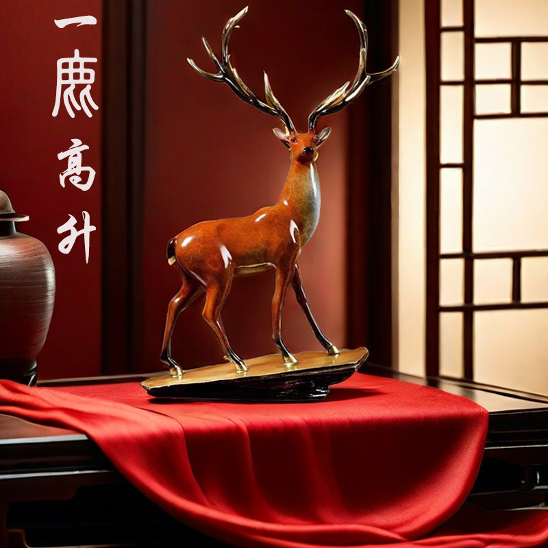 中式梅花鹿摆件客厅电视柜铜鹿工艺品招财装饰品乔迁开业新年礼品